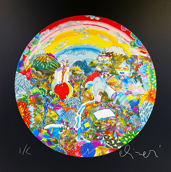 ALINARI LUCA "L'altro io del suo io" Serigrafia polimaterica a 35 passaggi di colore su cartone Scholler cm 70x70 il cartone - diametro cm 57,5 il tondo Tiratura 200 numeri arabi, 100 numeri romani, 25 p.a. Opera numerata in basso a sinistra e firmata in basso a destra Certificato di autenticità a retro dell'opera 70x70 cm