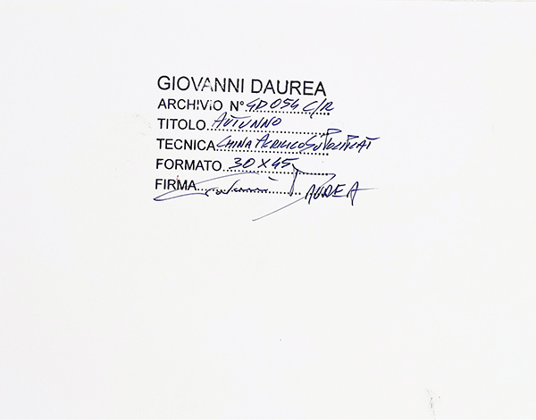 DAUREA GIOVANNI "Autunno" China e acrilico su poliplat Opera archiviata GD054C/R Titolo, firma numero di archiviazione e dimensione a retro 30x45 cm