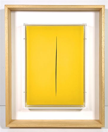GIORGIO GOST "After Fontana Lucio" Capsula del tempo Omaggio a Lucio Fontana. Pittura e resina su legno intagliato. Opera archiviata presso l'archivio Giorgio Gost Oera pubblicata nel catalogo "GIORGIO GOST 8 - After… Capsule del tempo old economy 33x24 cm