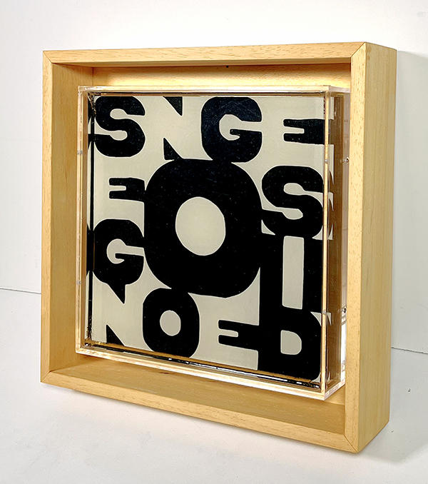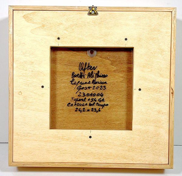 GIORGIO GOST "After Boetti Alighiero" Capsula del tempo Omaggio a Alighiero Boetti. Pittura e resina su legno intagliato. Opera archiviata presso l'archivio Giorgio Gost Oera pubblicata nel catalogo "GIORGIO GOST 8 - After… Capsule del tempo old economy 23,6x24,4 cm