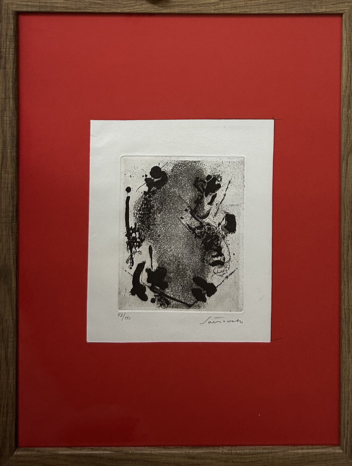 GIUSEPPE SANTOMASO, Senza titolo, 1963, Incisione su carta, cm 14x11, con cornice 43x33 cm. Opera stampata da Giovagnoni Ancona nel 1963, Al fronte: esemplare n° 52/150 in basso a sinistra, firmata in basso a destra, Opera con cornice
