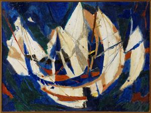PAULUCCI ENRICO Genova 1901 - 1999 Torino Vele 1959 Olio su tela 60x80 cm...