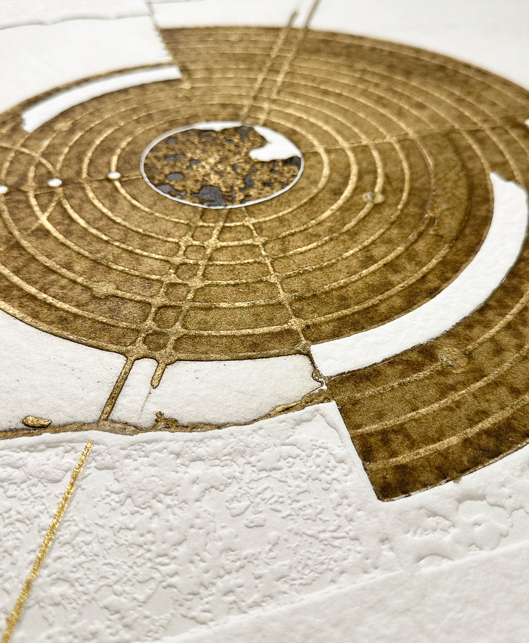 Acquaforte acquatinta con retouchè foglia oro su carta Moulin de Larroque
