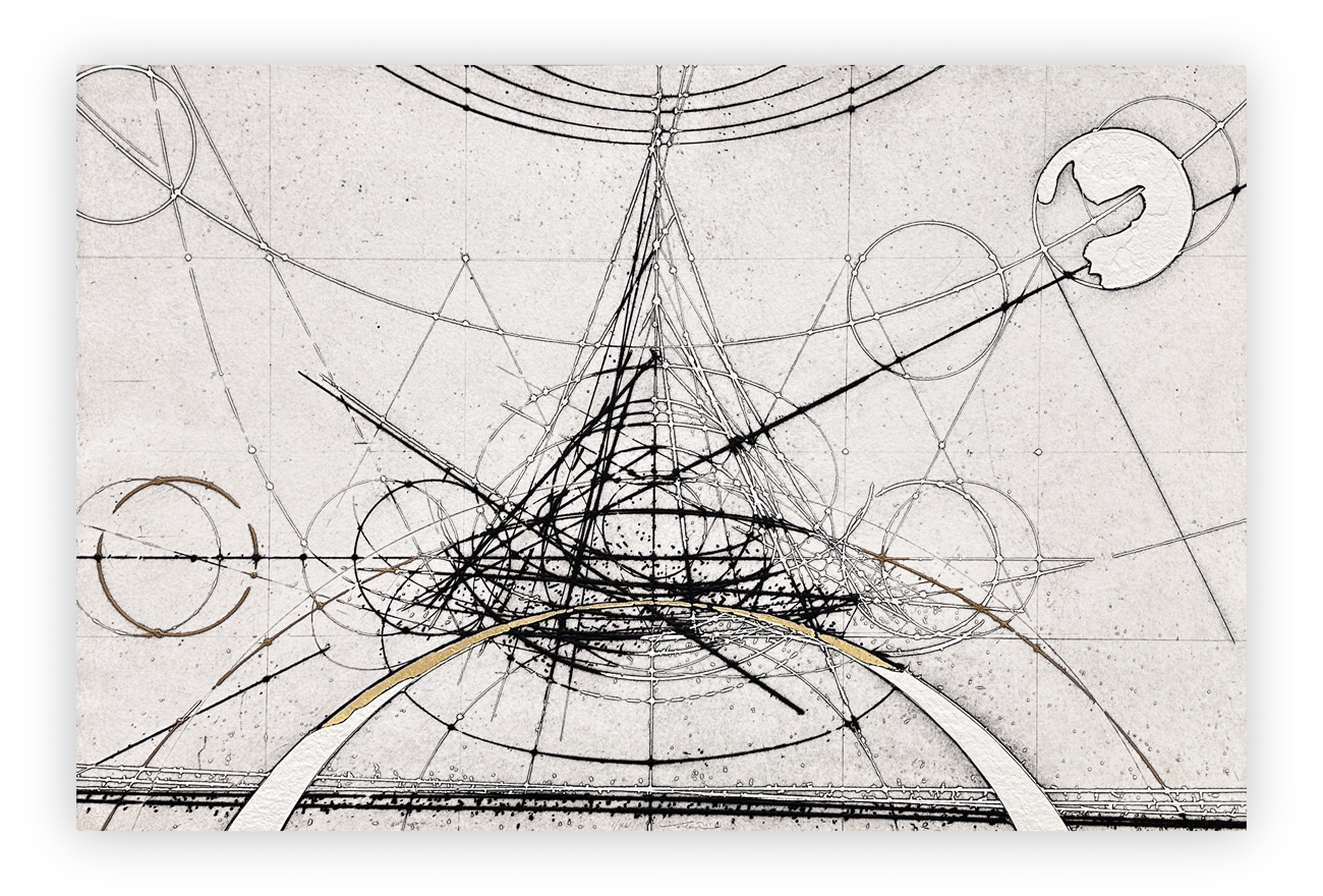 Acquaforte acquatinta con retouchè foglia oro su carta Moulin de Larroque