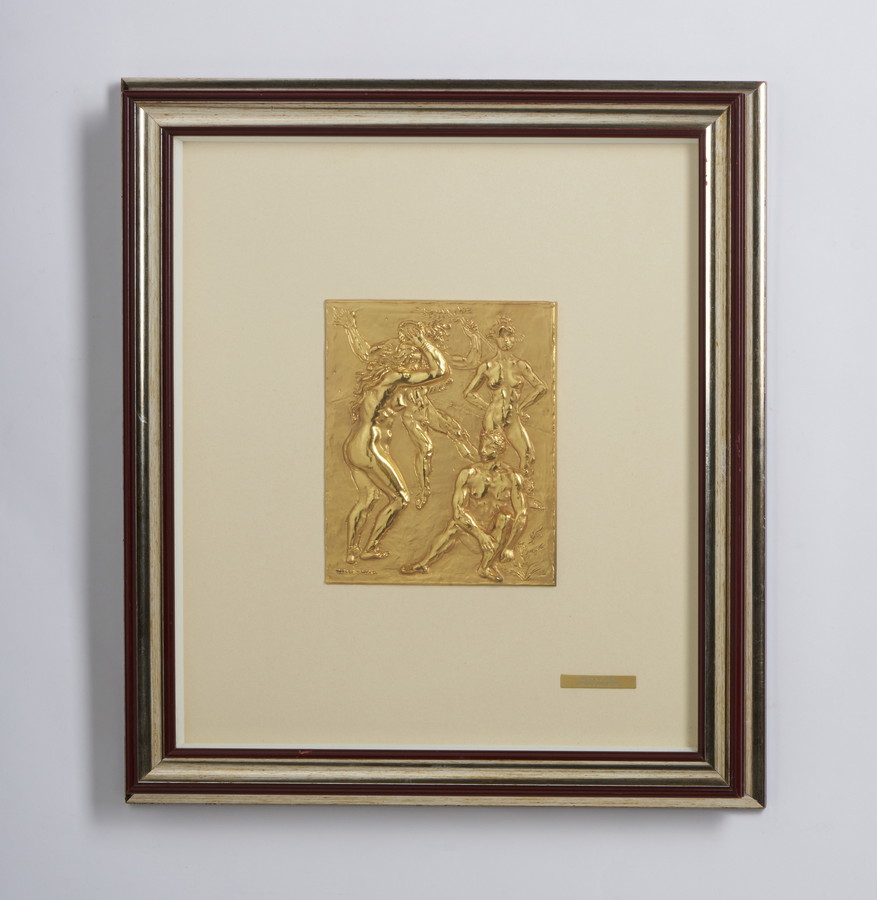 MESSINA FRANCESCO (1900 - 1995) DANZA CAMPESTRE. bassorilievo in bronzo. Cm 15,00 x 20,00. Multiplo in bronzo dorato firma incisa in basso.