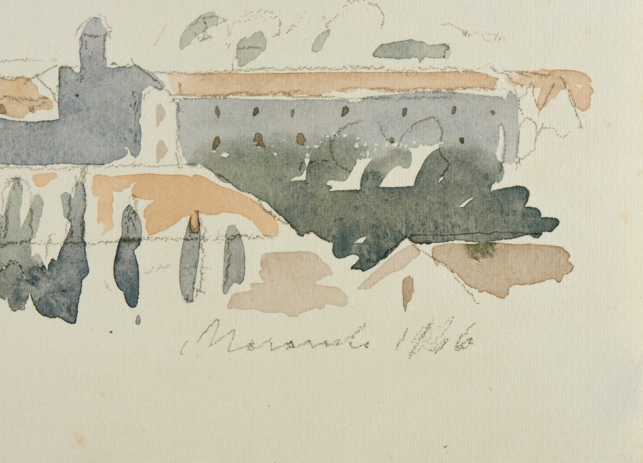 MORANDI GIORGIO (1890 - 1964) PAESAGGIO (DAL VOLUME GIORGIO MORANDI 50 DISEGNI DI MORANDI - 50 TAVOLE). fotolitografia. Cm 24,00 x 16,00. firma, data in lastra