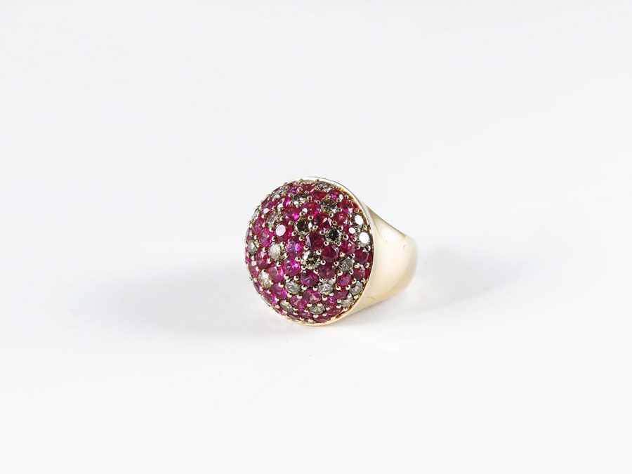 ANELLO IN ORO ROSA, DIAMANTI BROWN E RUBINI gr 14,3 BROWN DIAMONDS AND RUBIES PINK GOLD RING