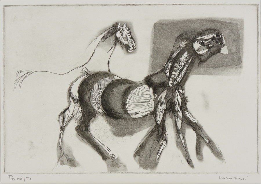 CASSINARI BRUNO (1912 - 1992) CAVALLI IN OMBRA. Acquaforte e acquatinta. Cm 54,00 x 40,00. firma e tiratura a matita, es. 44/70