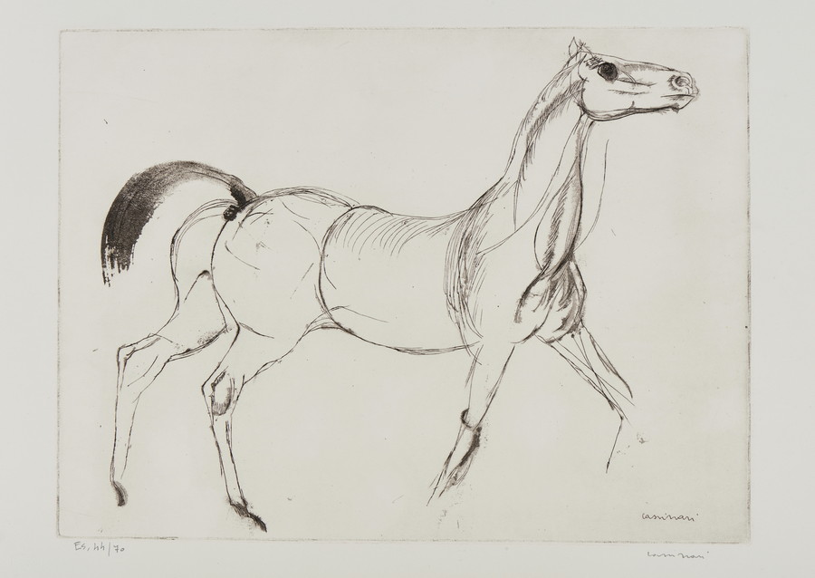CASSINARI BRUNO (1912 - 1992) STUDIO DI CAVALLO. acquaforte. Cm 54,00 x 40,00. firma e tiratura a matita, es. 44/70