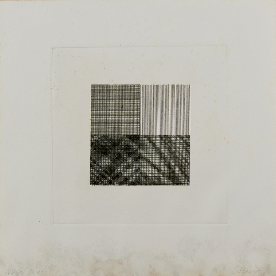 LEWITT SOL (1928 - 2007) LINES IN FOUR DIRECTIONS, SUPERIMPOSED IN EACH QUARTER OF THE SQUARE PROGRESSIVELY (BLACK). 1971. acquaforte. Cm 27,50 x 27,50. firma e tiratura a matita, es. AP