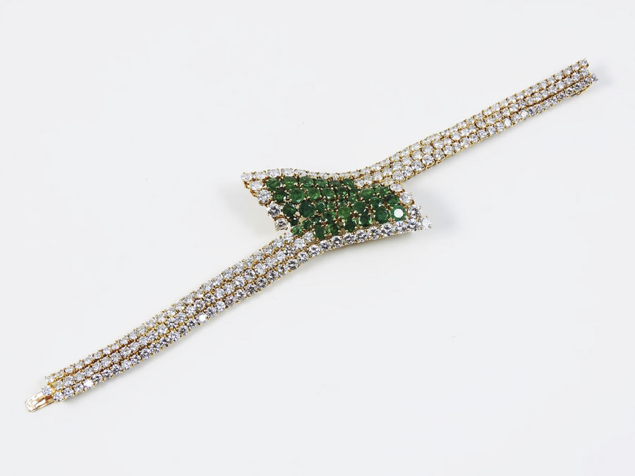 BRACCIALE IN ORO GIALLO, DIAMANTI E SMERALDI M. Gerard, Paris realizzato con...