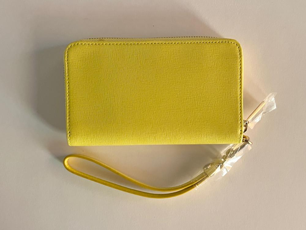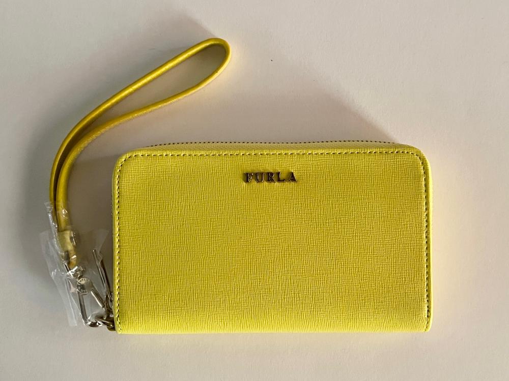 Furla Babylon L zip around wallet/wristlet in Sunny leather. High quality embossed leather with 4 credit card slots, 3 separated inner compartments, and removable wrist strap. Brand new with tags in original box with dustbag