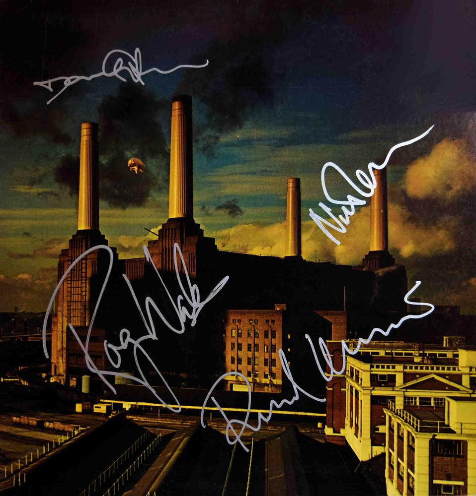 Pink Floyd 1977 Animals signed album autographed by Roger Waters, David Gilmour, Nick Mason, and Richard Wright.