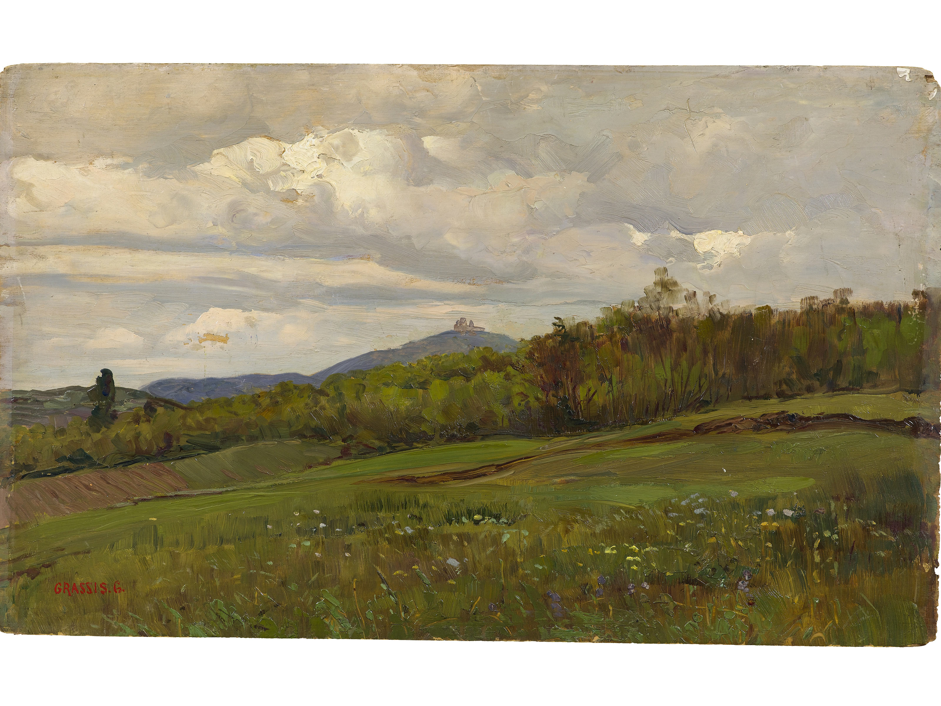 Lotto 50 | Giuseppe Grassis (Torino 1870-1949) Paesaggio Olio su tavoletta Datato 1901...