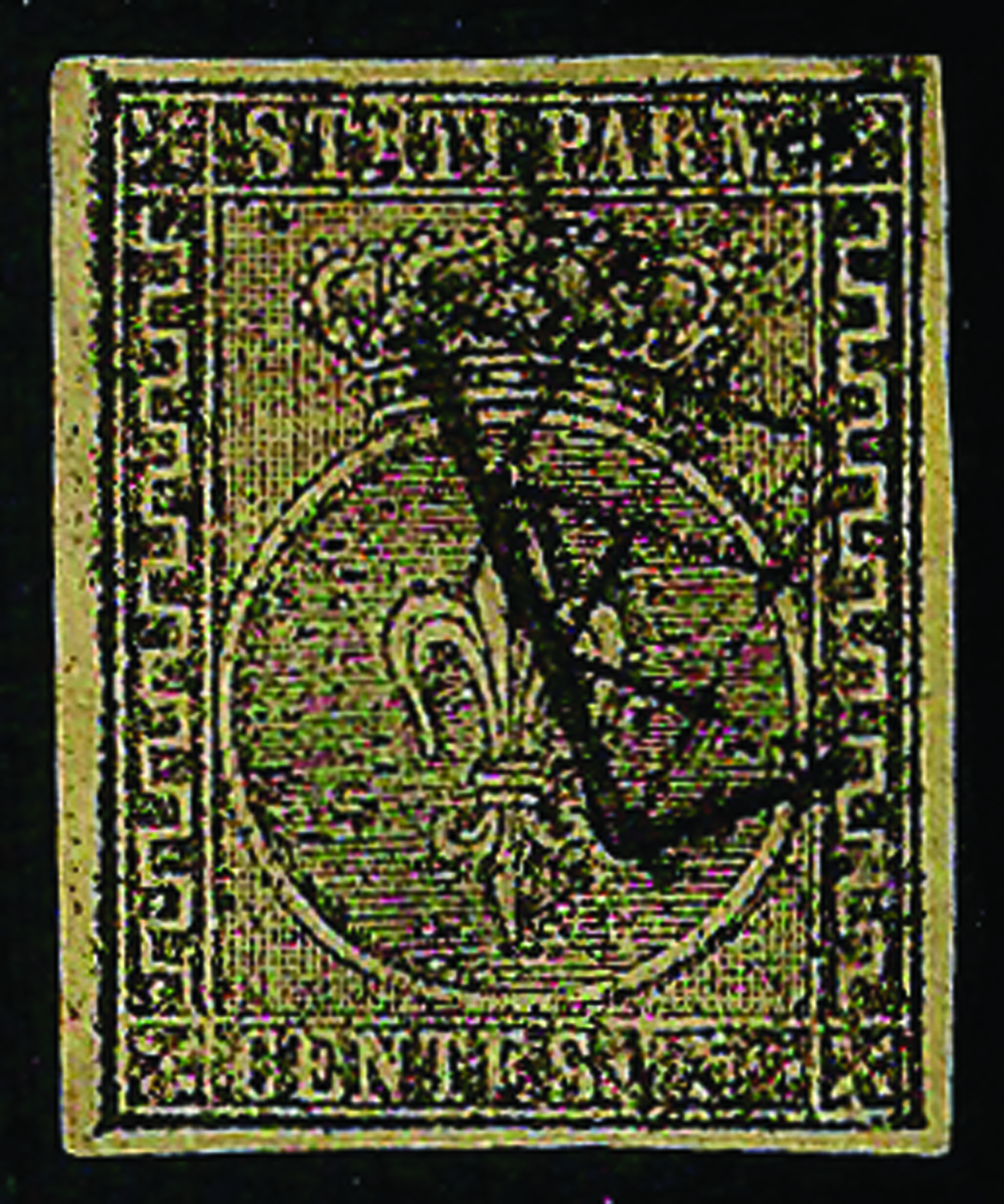 Antichi Stati Italiani - Parma - C.5 giallo chiaro 'VERDINO'Usato con la varietà senza la cifra '5' del valore, molto raro, cert. Bottacchi