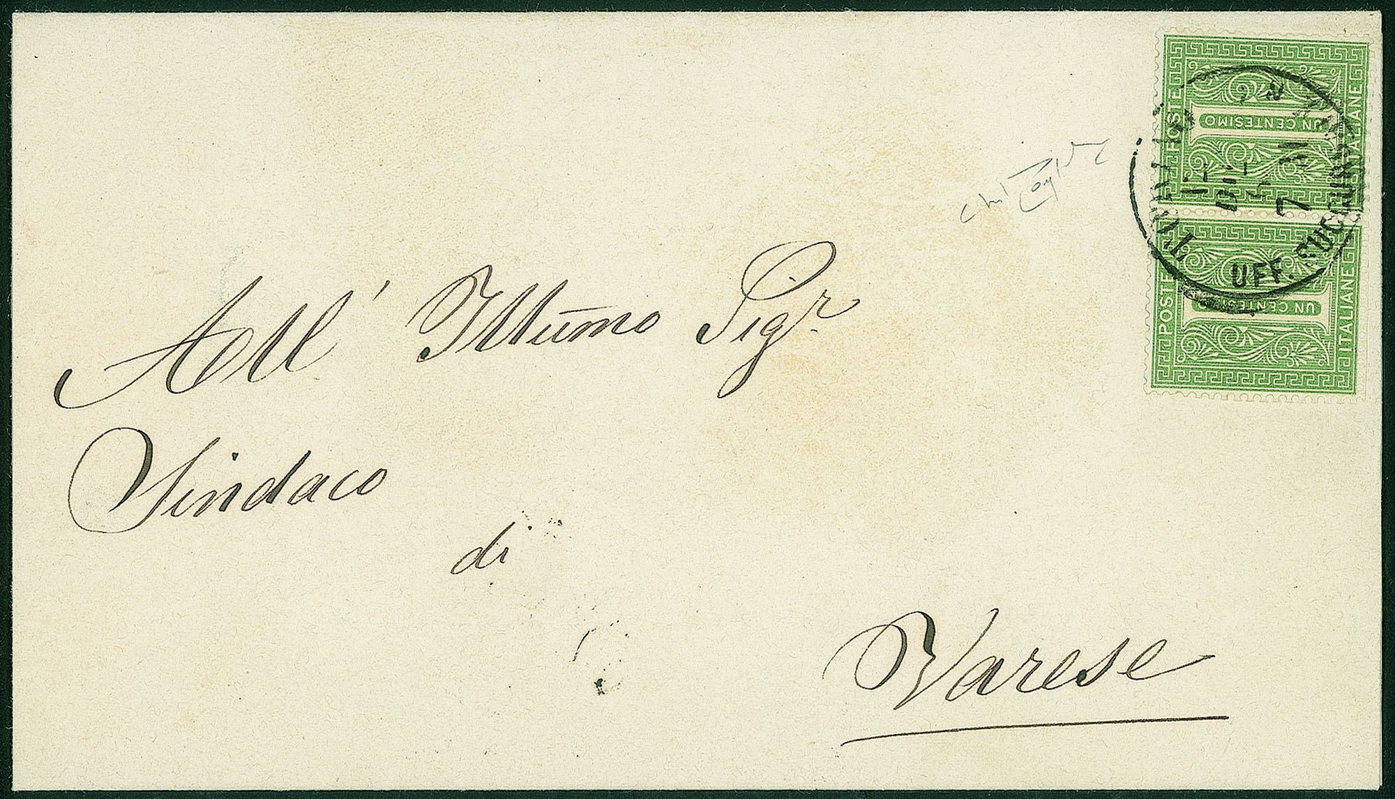 Regno - Vittorio Emanuele II - Coppia del 1 cent DLR (L14)Su piego da Torino a Milano del 12.12.63 - Raybaudi