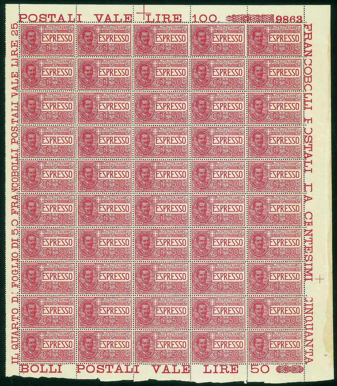 Regno - Espressi - 1920 - Bellissimo foglio di 50 esemplari del 50 cent Espresso (4)