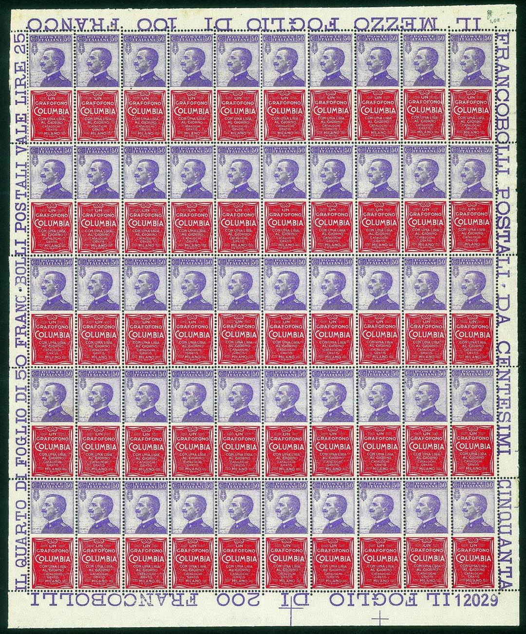 Regno - Francobolli pubblicitari - 1924 - Bellissimo foglio di 50 esemplari del 50 cent Colombia (11)