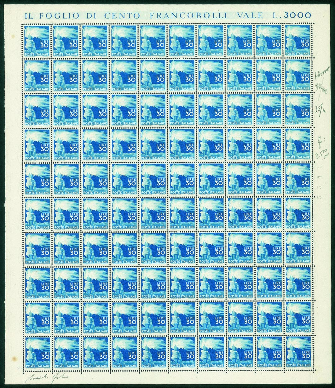 Italia - Repubblica - 1947 - Splendido foglio di 100 esemplari del 30 lire Democratica (563)
