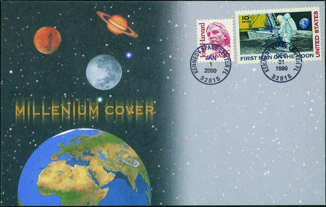 Collezione Spazio - Stati Uniti D'america - Shuttle - 1999/2000 - Millenium CoverBusta affrancata con 10 cent Astronauta Ignoto + 56 cent annullato Kennedy Space Center Fl. del 31.12.1999 e del 1.1.2000 in occasione del passaggio del millennio - busta 116 di 268 - cert. finanziario Bolaffi 50%