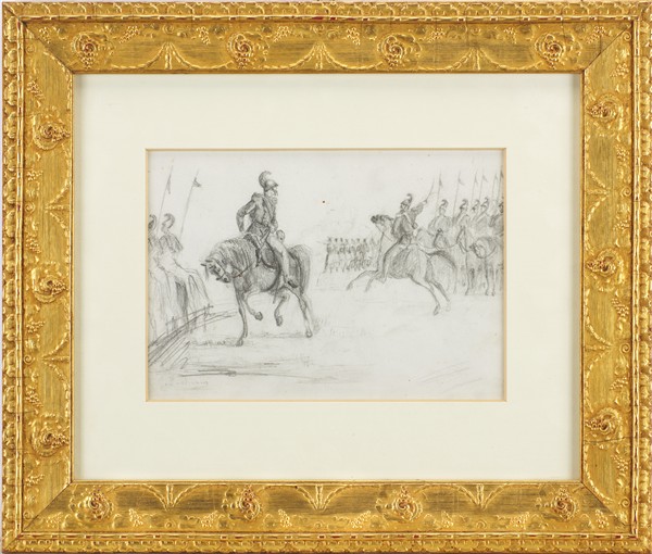 Gerolamo Induno "Cavalleggeri" matita su carta (cm 17x25) firmato in basso a si