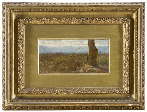 Francesco Paolo Michetti "Paesaggio abruzzese" olio su cartone (cm 12x22) firma