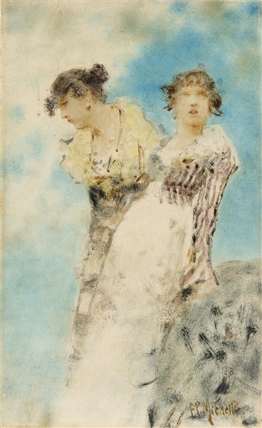 Francesco Paolo Michetti "Due contadinelle" olio su carta applicata a tela (cm