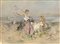 Francesco Paolo Michetti "Sulla spiaggia" tecnica mista su carta (cm 30x43) fir