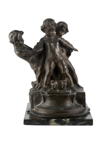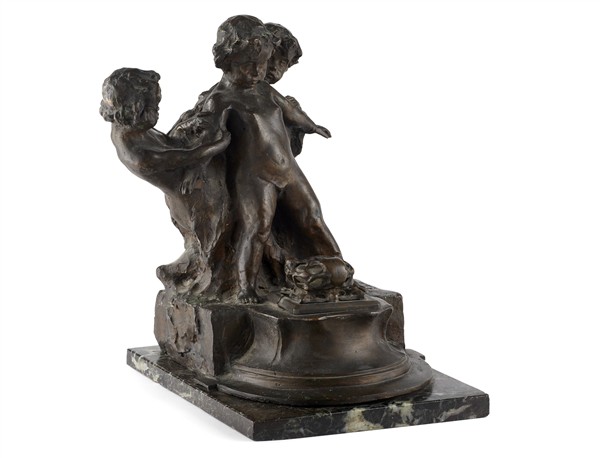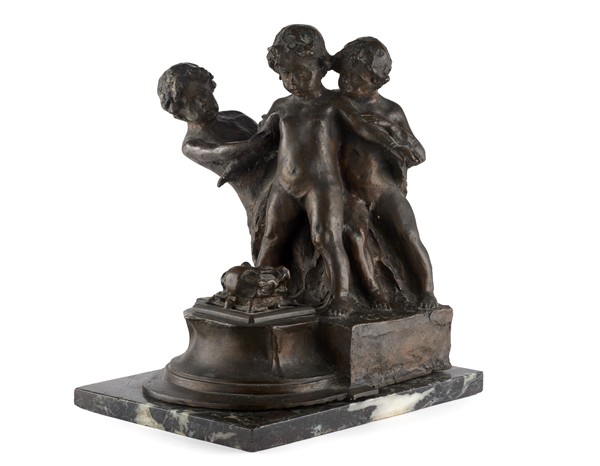 Eliseo Sala "I tre fanciulli" scultura in bronzo con calamaio su base in marmo