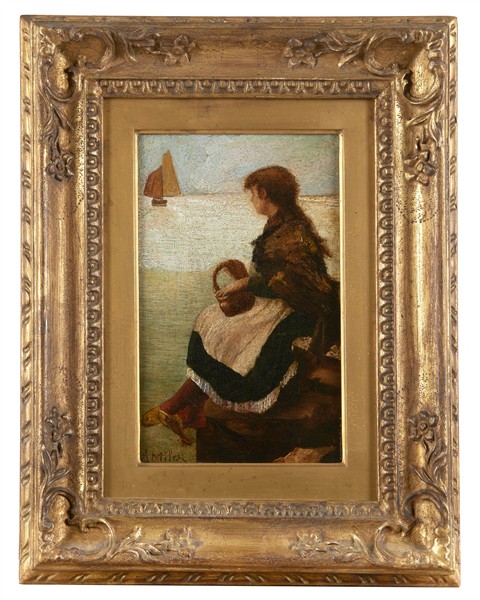 Alessandro Milesi "L'attesa" olio su tela (cm 28x17,5) firmato in basso a sinis