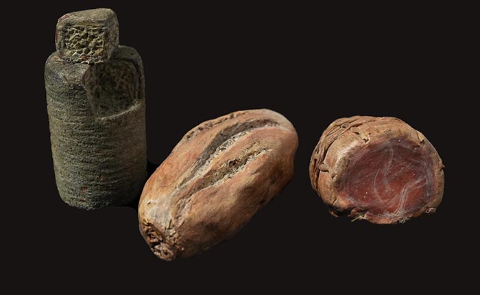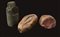 Lotto composto da: salume cm 3,5 formaggio cm 4,5 pane cm 6 in terracotta policroma