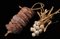 Lotto composto da: freselle cm 8,5 aglio cm 11 in terracotta policroma