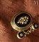 Broche ovale en or jaune 18k (750 millièmes) et onyx à décor appliqué de fleurs et feuillages soulignés de demi perles. Travail français du XIXème siècle.