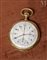 Montre à gousset en or jaune 18k (750 millièmes), chronographe monopoussoir. Cadran blanc index chiffres arabes et lunette pulsométrique graduée aux pulsations, secondes à 6h et compteur 15 minutes à 12h, aiguilles dites "Breguet" en acier bleui, verre plexi.
