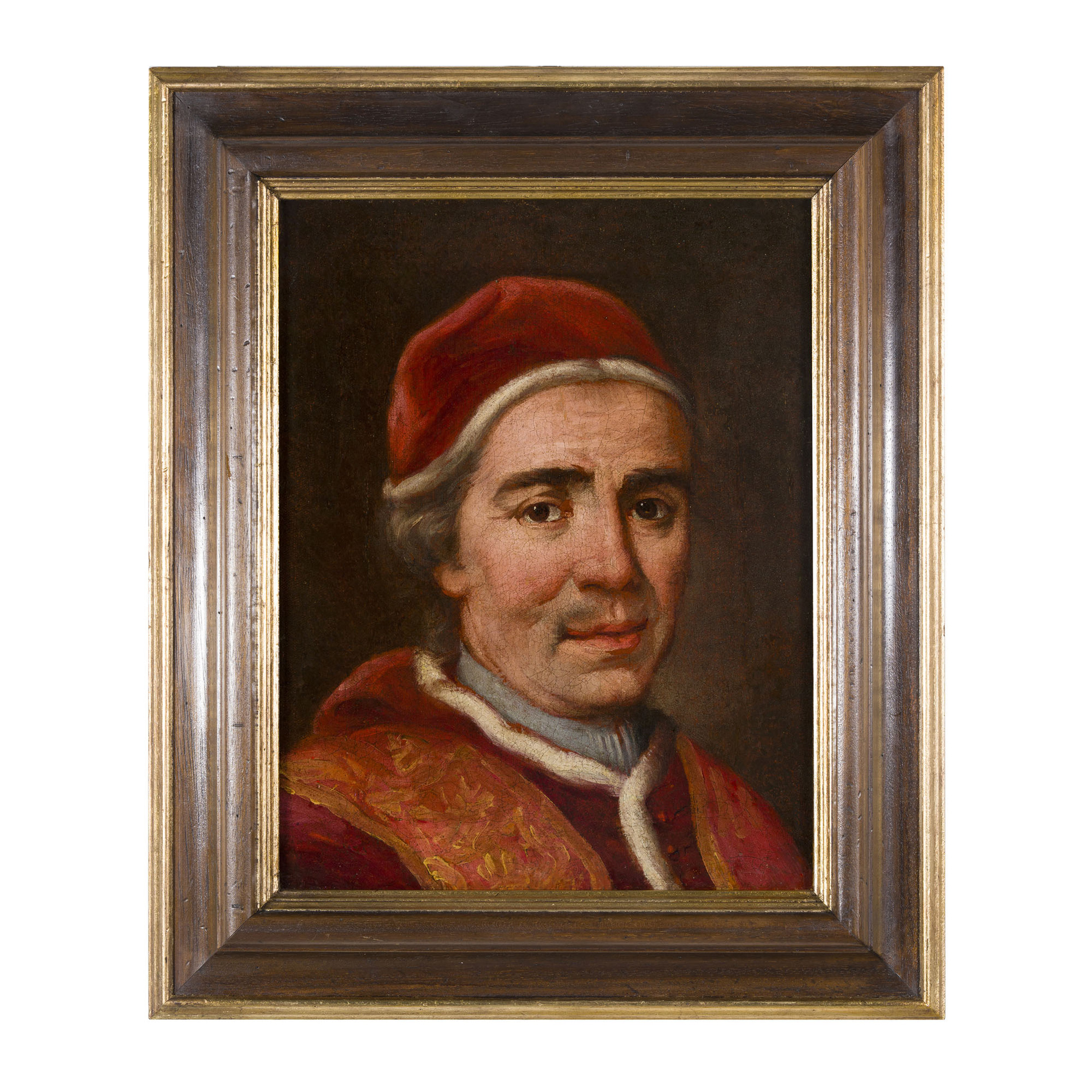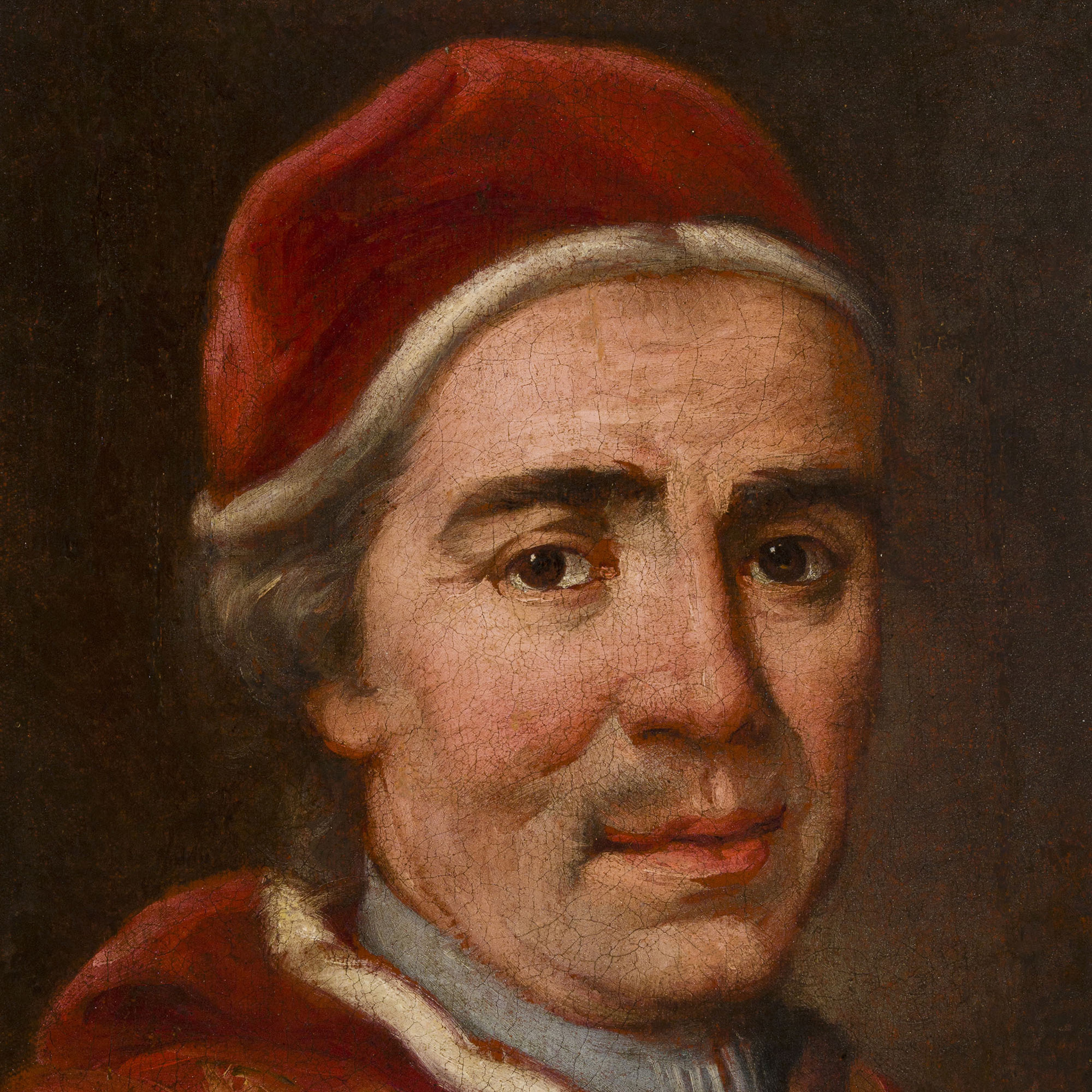 Almost certainly, this work is a study of the facial detail for the Portrait of Pope Clement XIV preserved at Museo della Città - Civic and Diocesan Museum of Acquapendente.