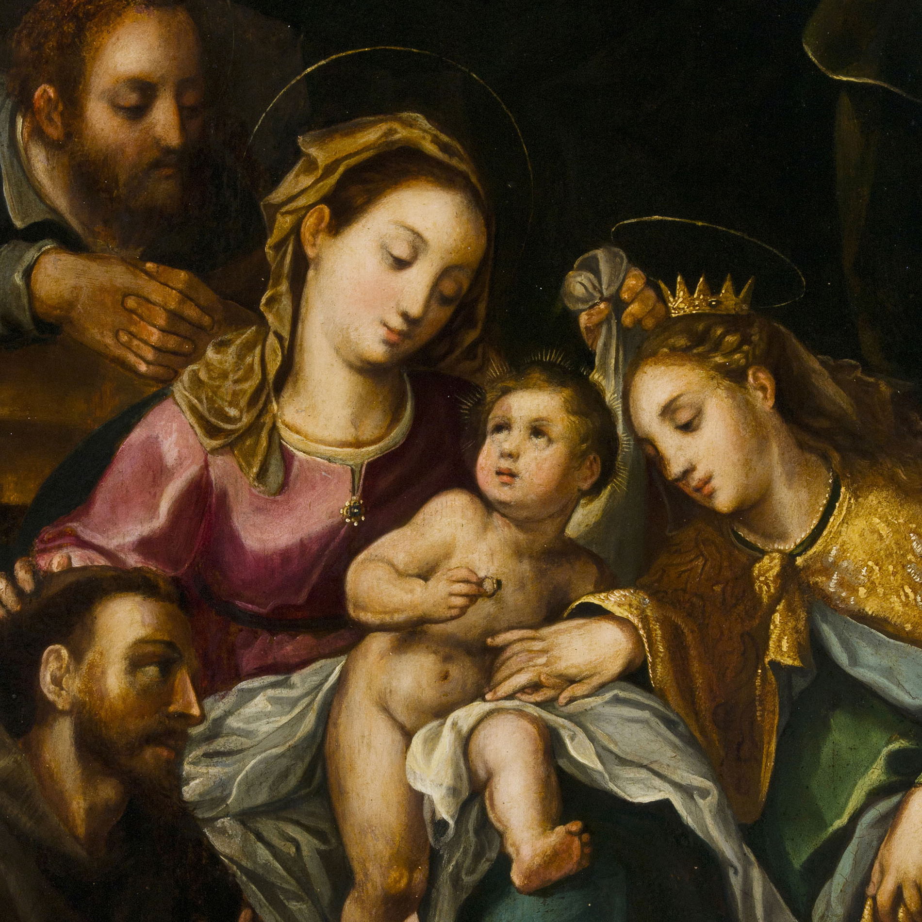 A fundamental comparative example for the attribution is the almost identical Madonna in the painting Holy Family with Angels, Saint John the Baptist and Saints Zachariah and Elizabeth, preserved in the church of San Pietro ad Ovile in Siena.