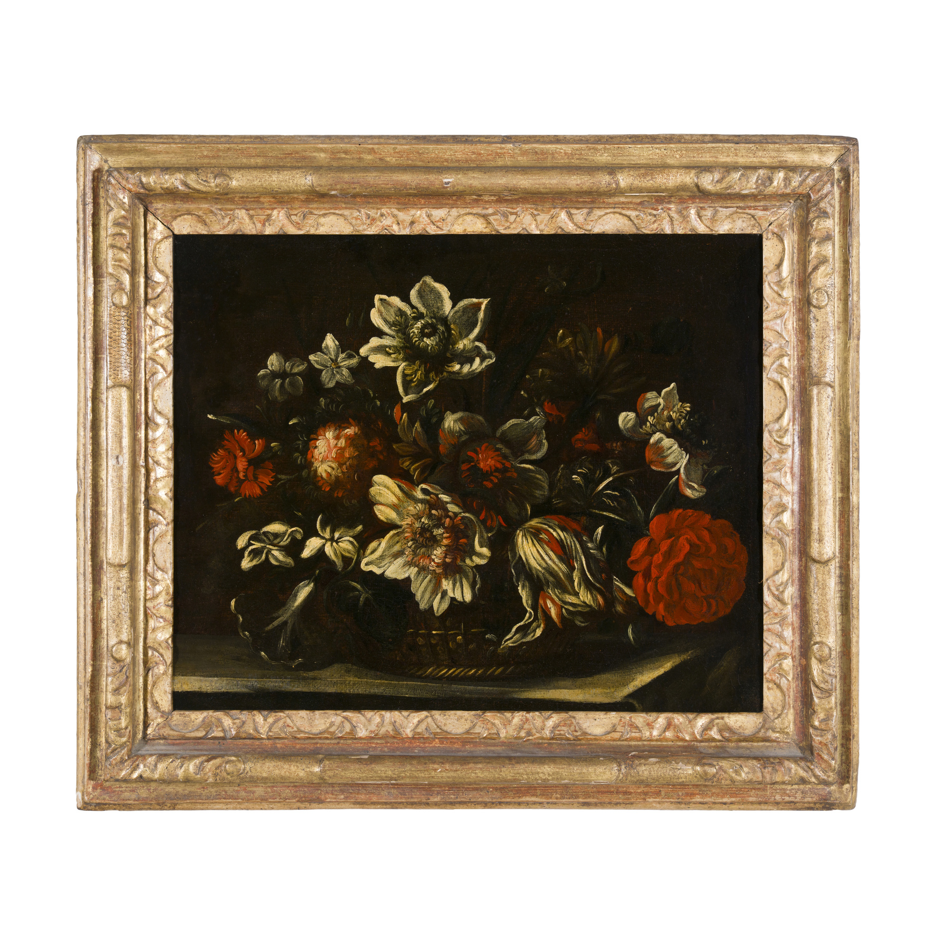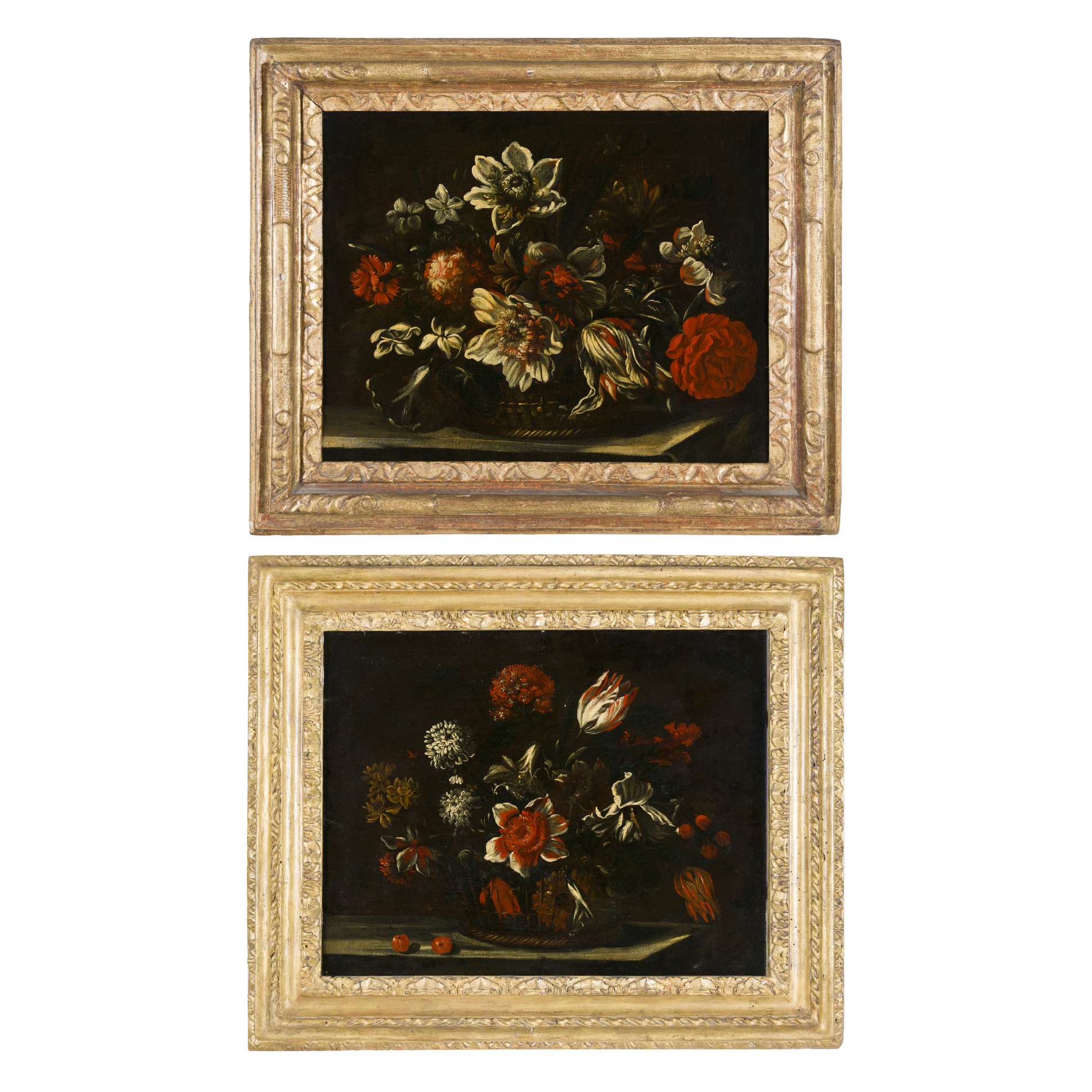 Cornici diverse, rispettivamente una romana con modello detto "Salvator Rosa" del XVII secolo (adattata alle dimensioni) e l'altra francese del XVIII secolo, entrambe di legno scolpito e dorato a foglia oro.