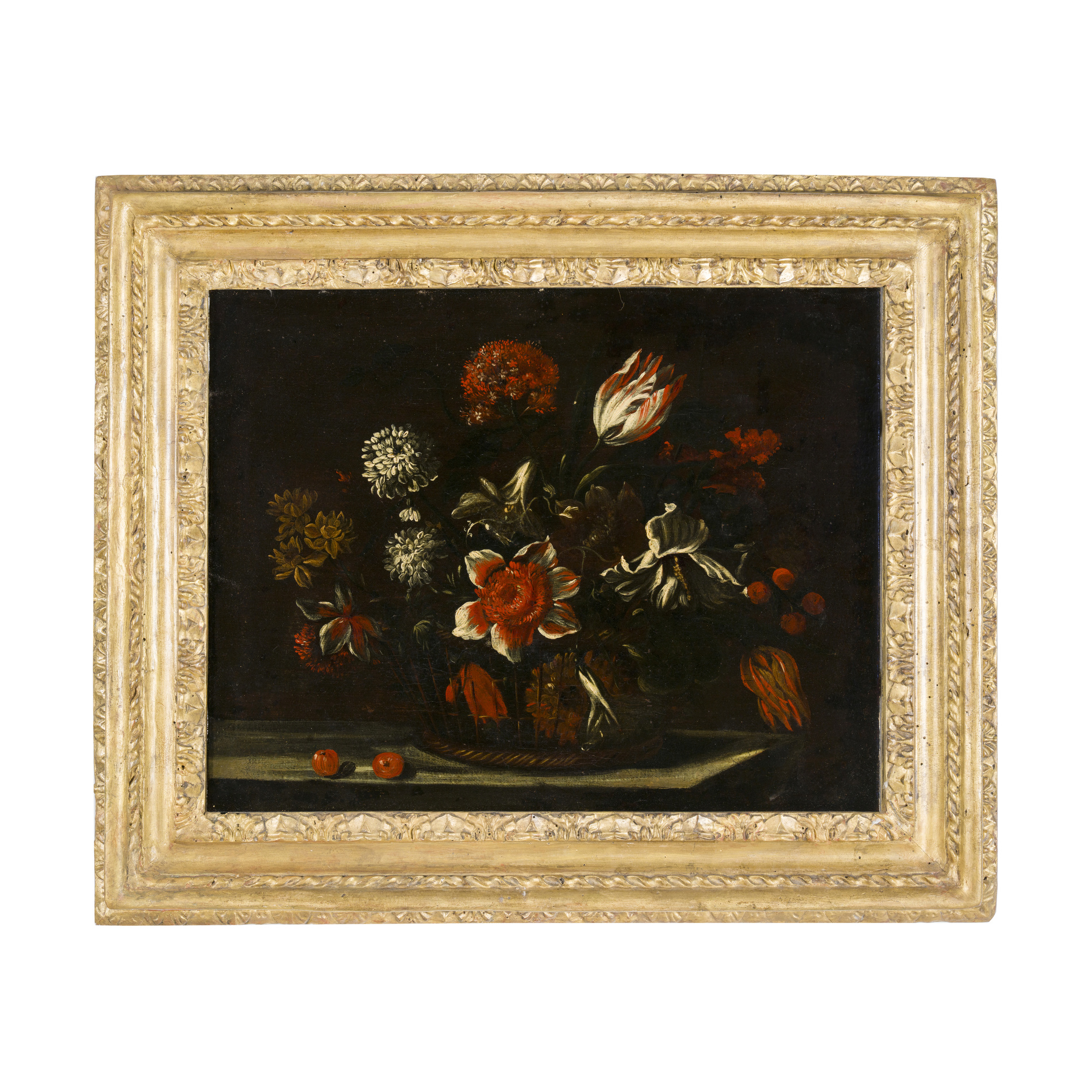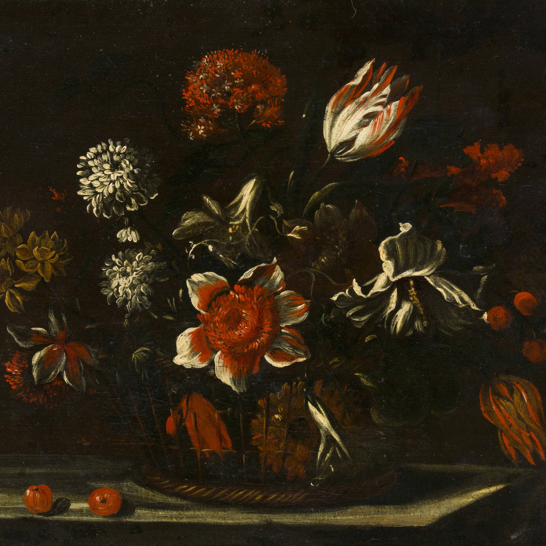Baskets of Flowers with two Cherries - Basket of Flowers