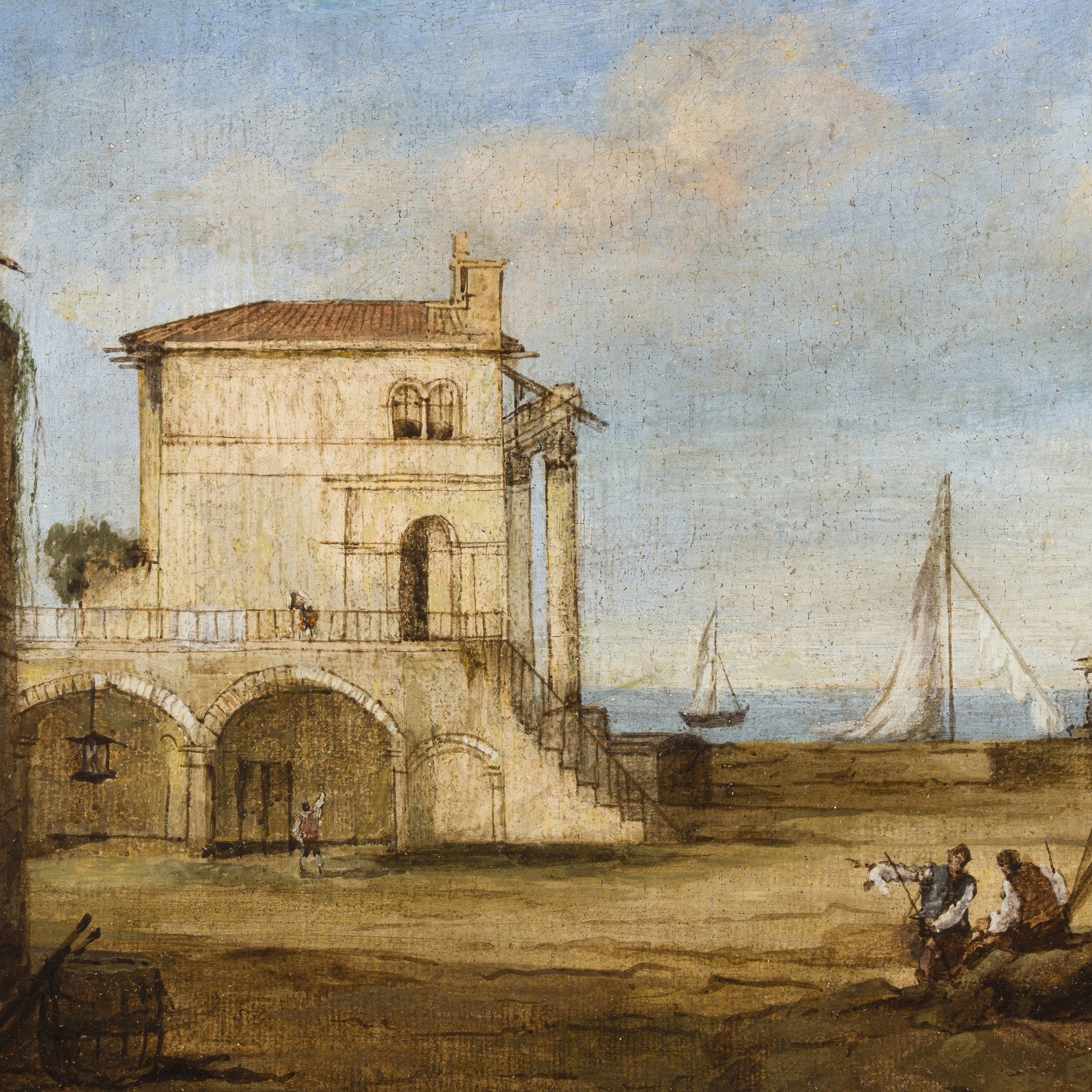 The work belongs to the rich and significant panorama of the Capriccio in 18th-century Veneto, in which masters such as Luca Carlevarijs, Marco Ricci, Francesco Zuccarelli, Francesco Battaglioli, Antonio Visentini, Francesco Guardi, Giuseppe Zais, Antonio Canaletto, and Bernardo Bellotto excelled. In this specific case, however, the clear colorism and perspectival spatiality suggest that the work originated in Michele Marieschi’s workshop, specifically by Francesco Albotto and Apollonio Domenichini, also known as the Master of the Langmatt Foundation.