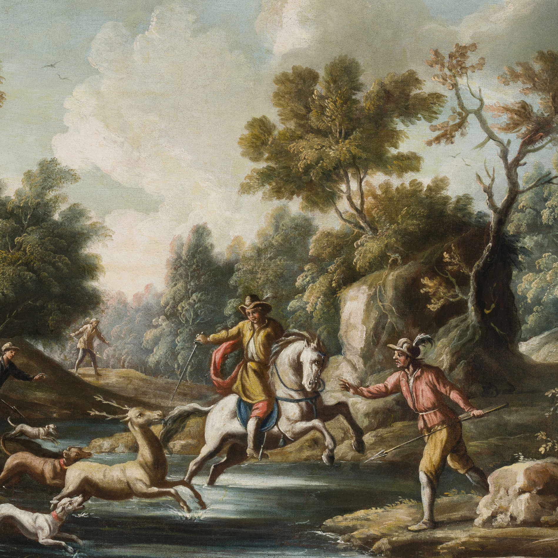 The work is inspired by the styles of Antonio Tempesta and Jan van der Straet, known as Giovanni Stradano.