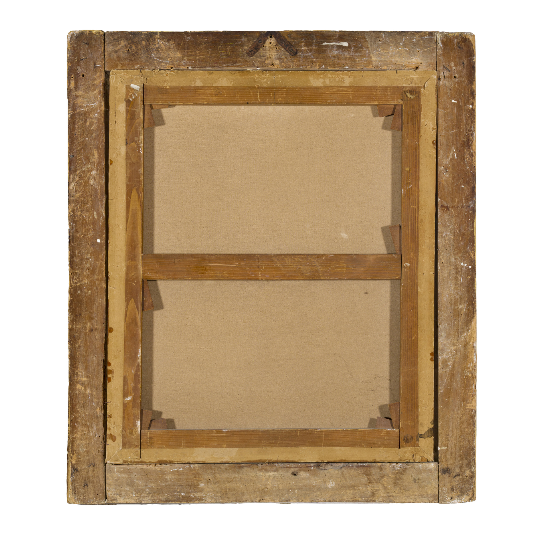 Work preserved in a period frame, known as a "cassetta" frame, painted and gilded.