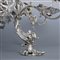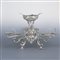 Épergne o centrotavola in argento composto da otto bracci a sostenere quattro cestini poco profondi in appoggio e quattro cestini con impugnatura