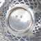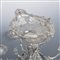 Corpo lavorato e traforato a motivi geometrici, floreali e volute, al centro porta frutta, montanti lavorati, ogni cestino reca incisione di cresta di stemma.