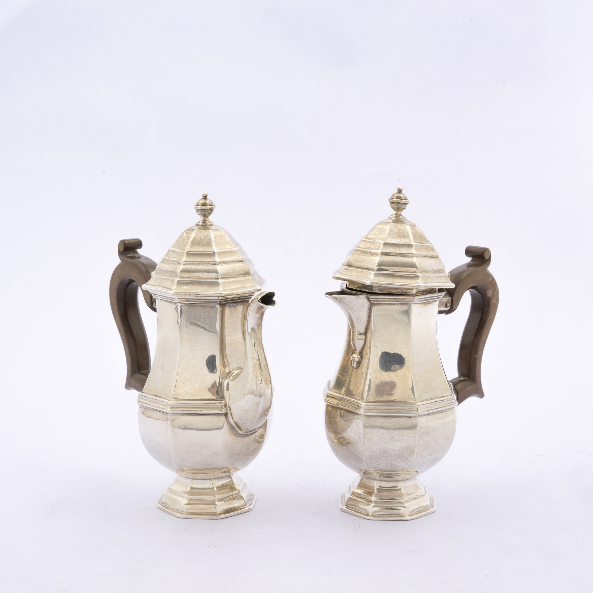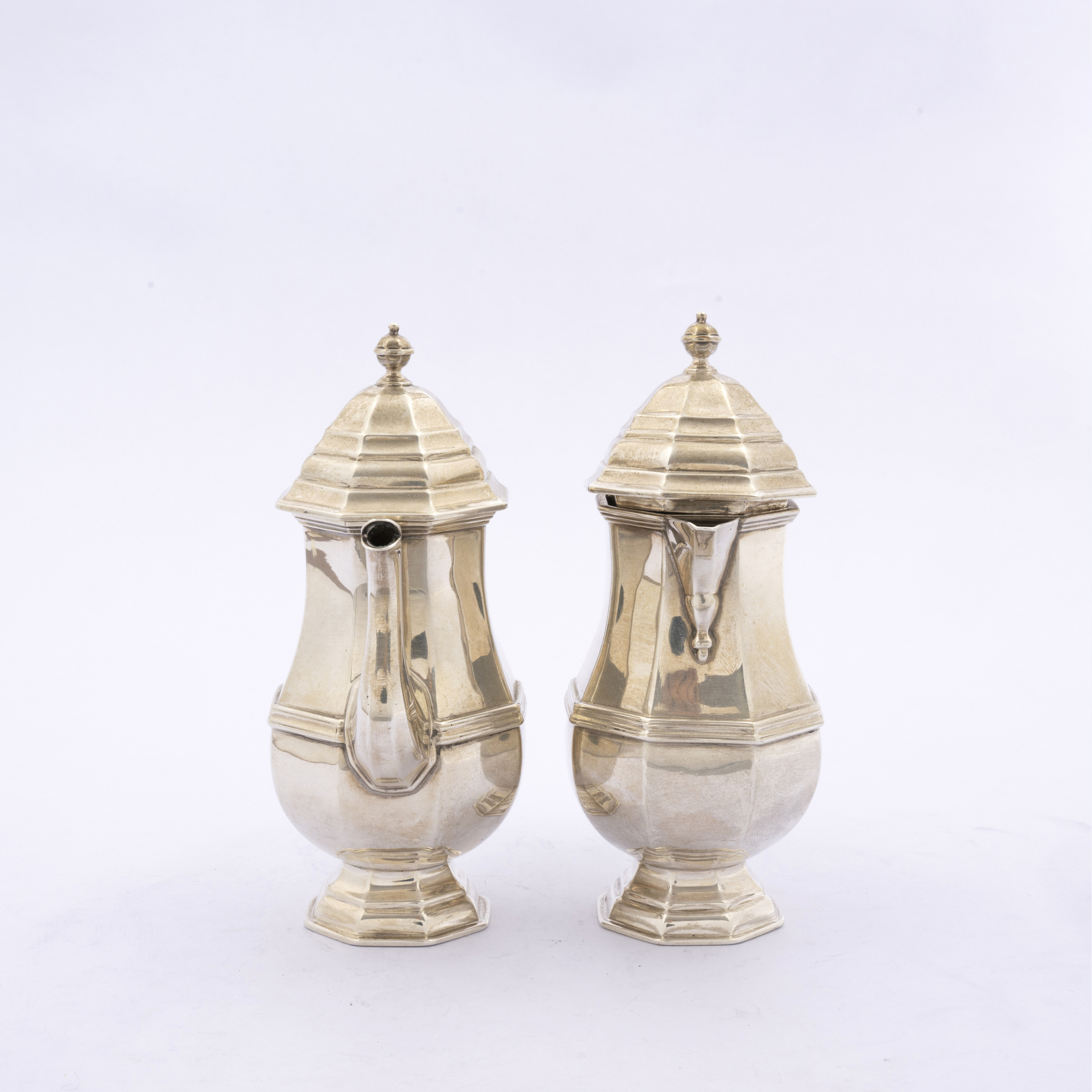 Coppia di caffettiere in argento con corpi lisci a forma ottagonale