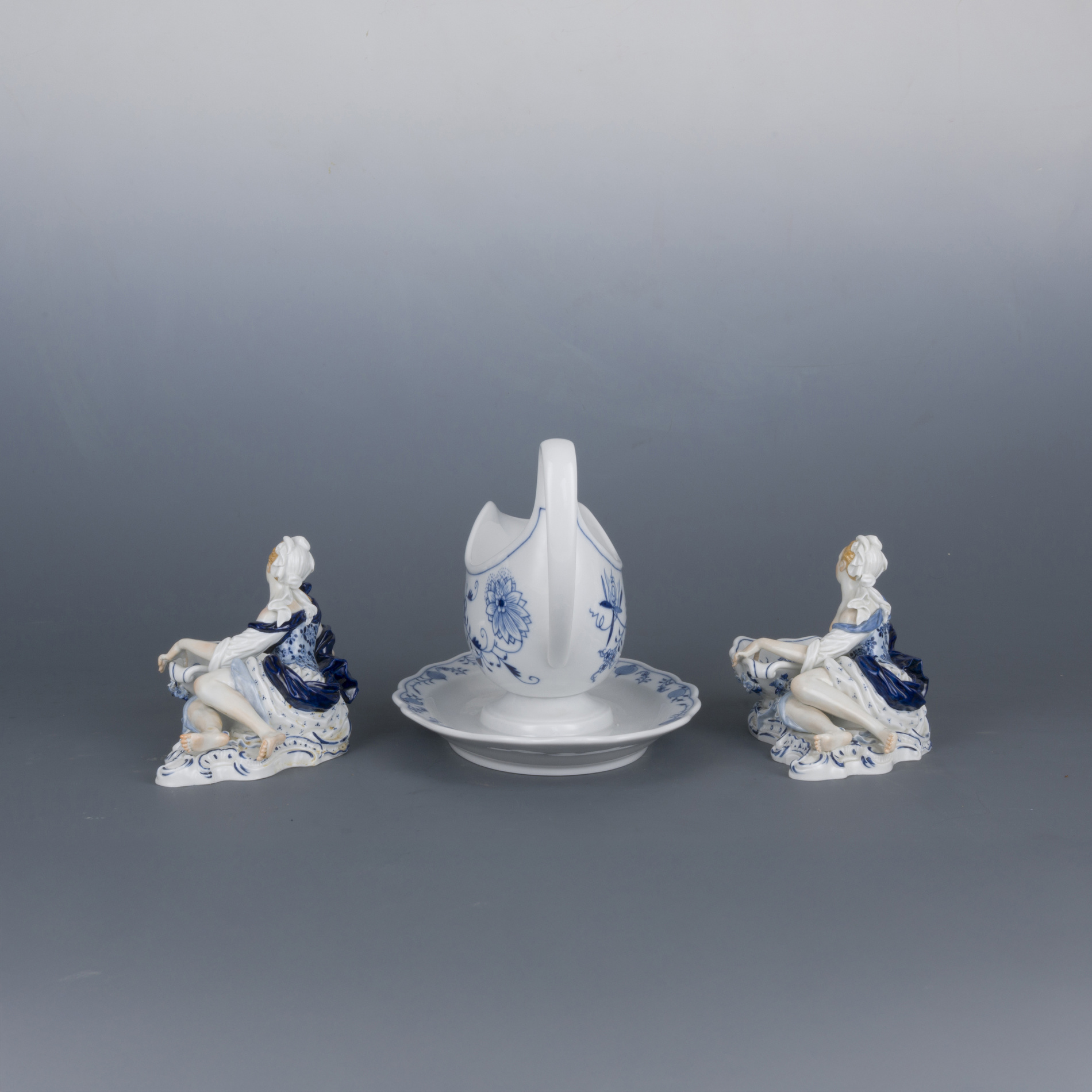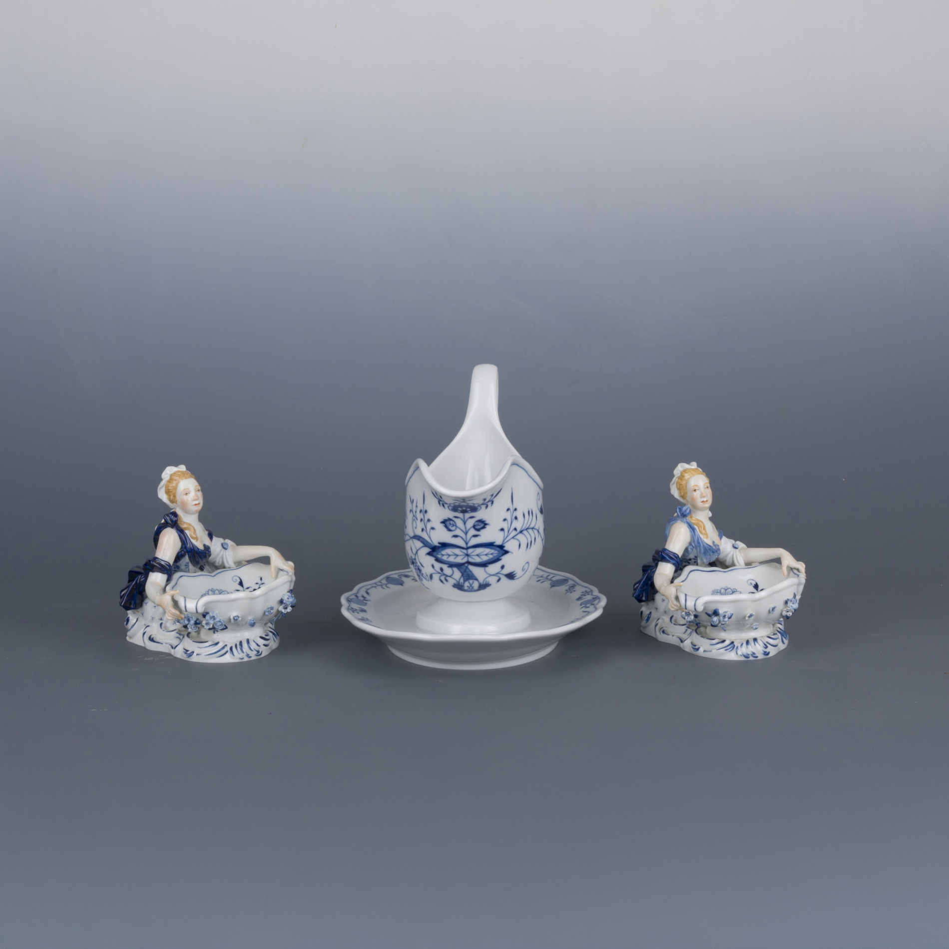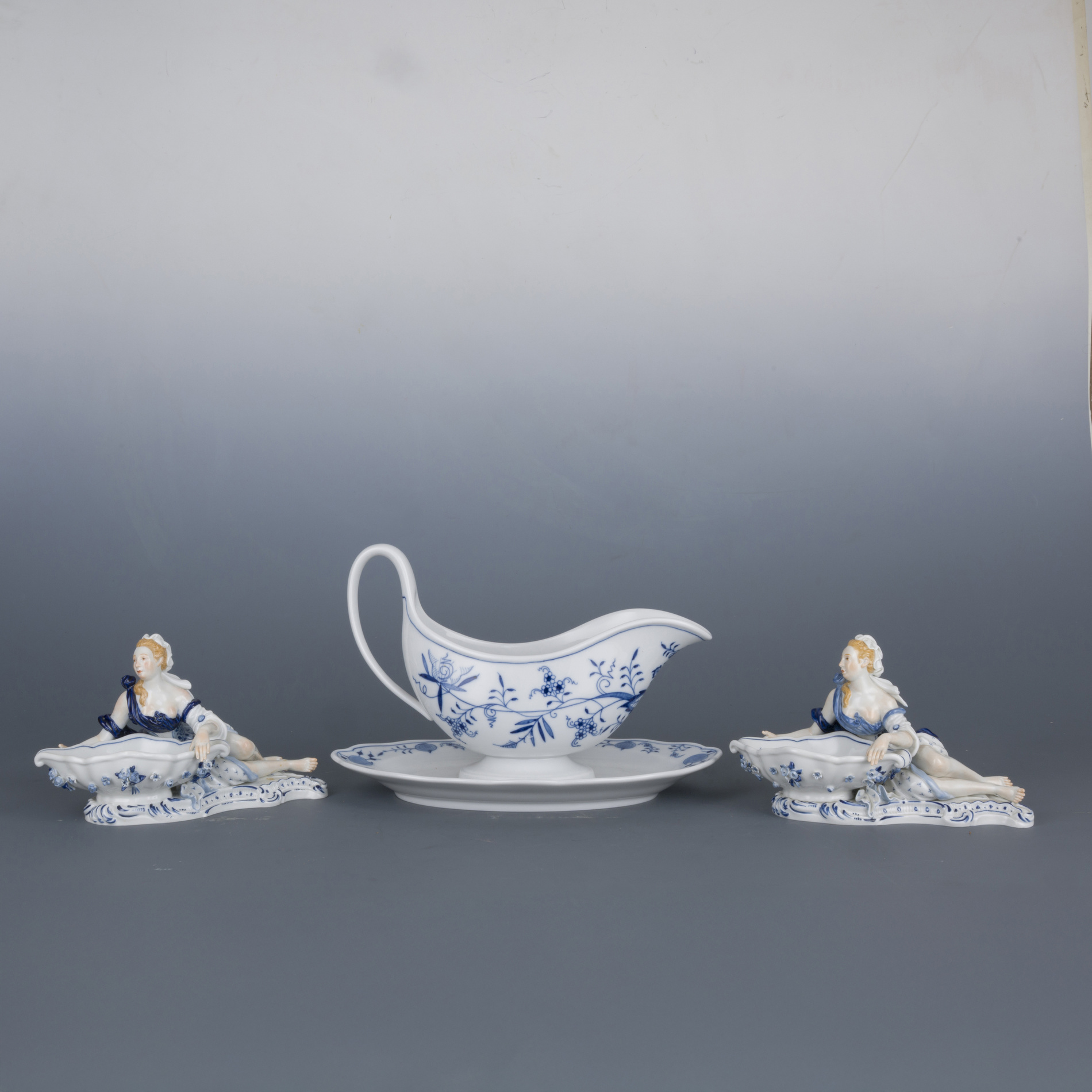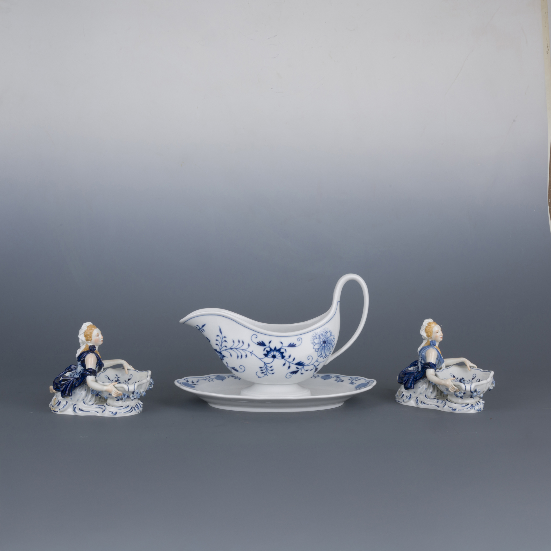 Porcelain with cobalt-blue "onion motif" (Zwiebelmuster) decoration