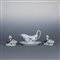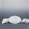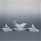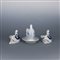 Raffiguranti figure femminili in abiti settecenteschi adagiate a sorreggere la coppa decorata con il motivo del fiore di cipolla