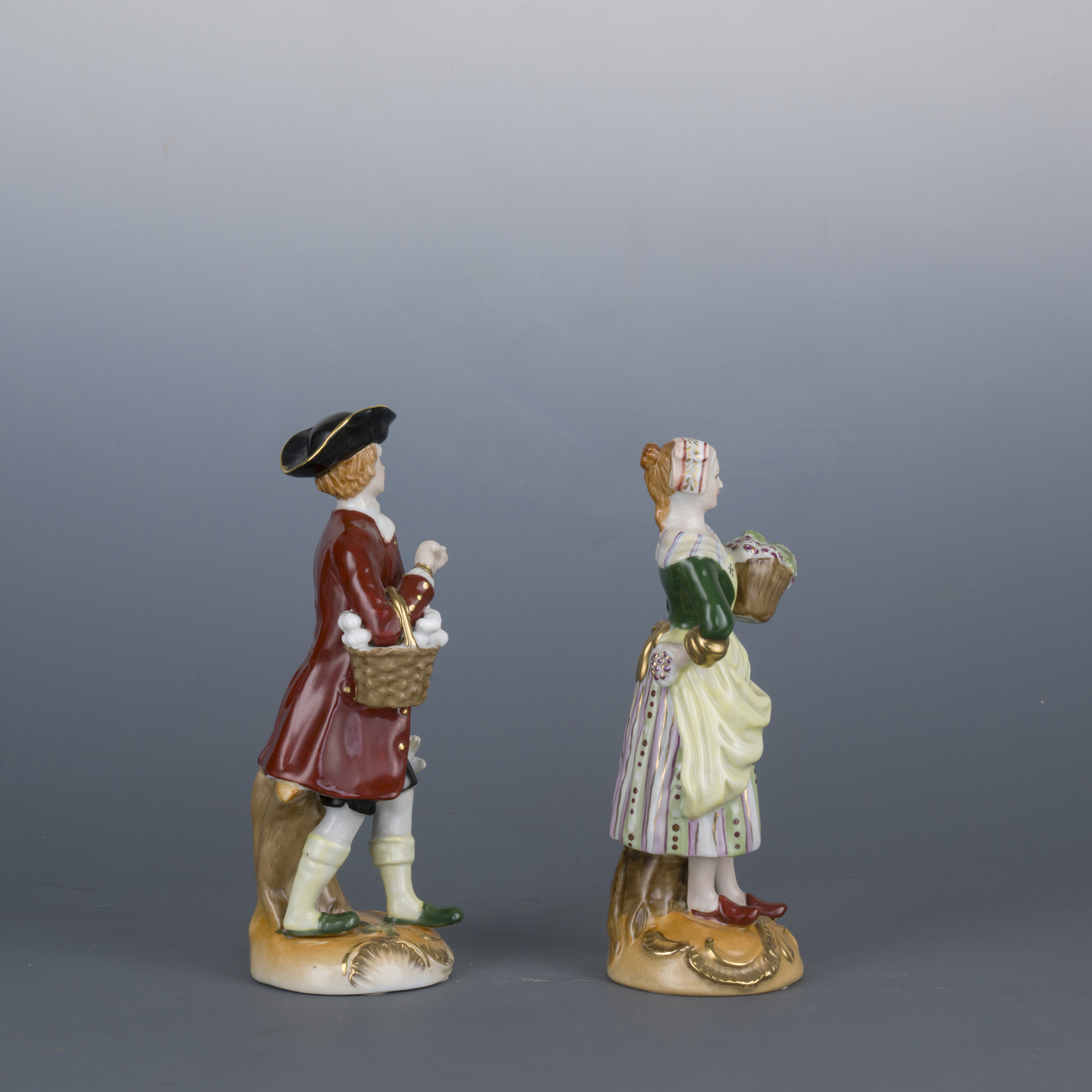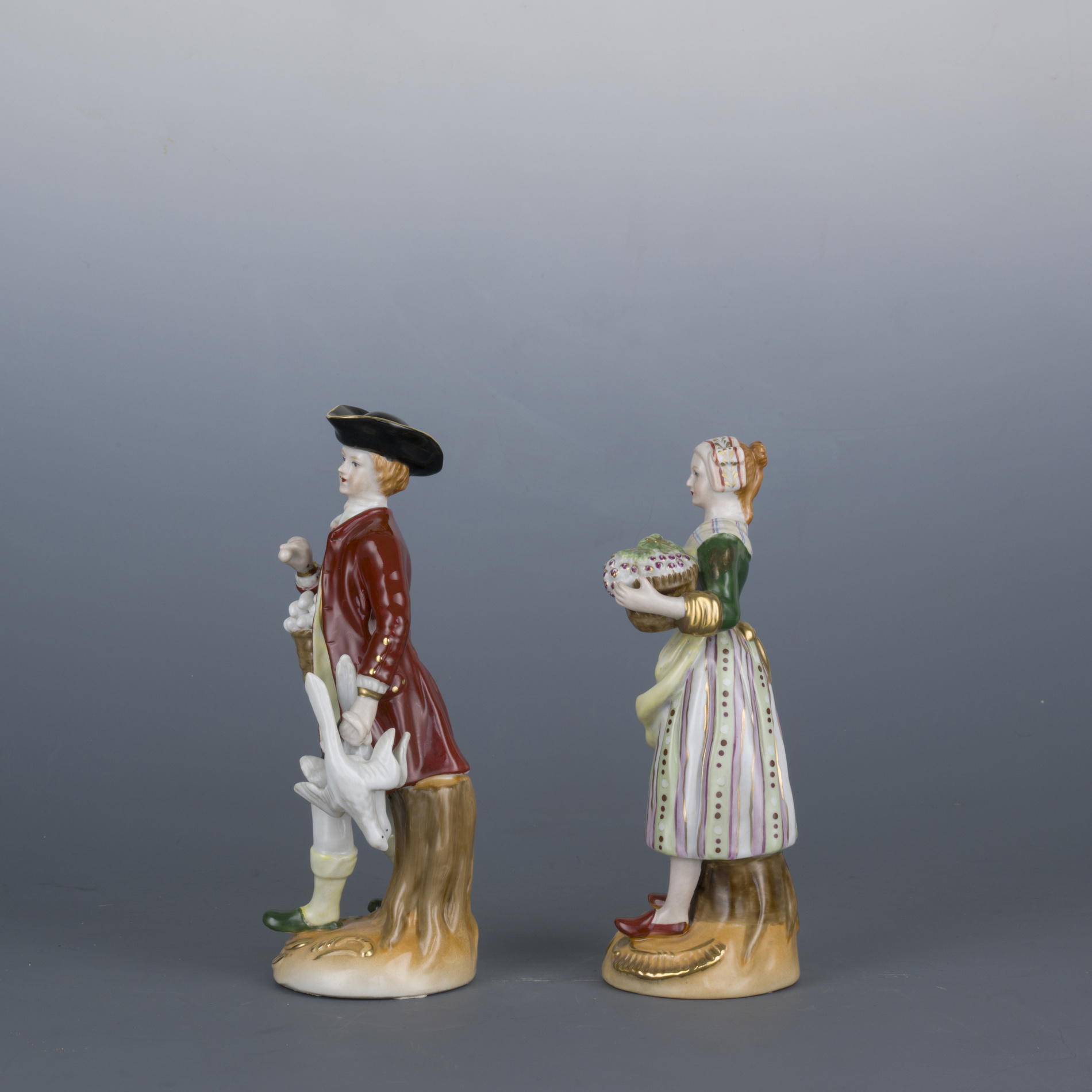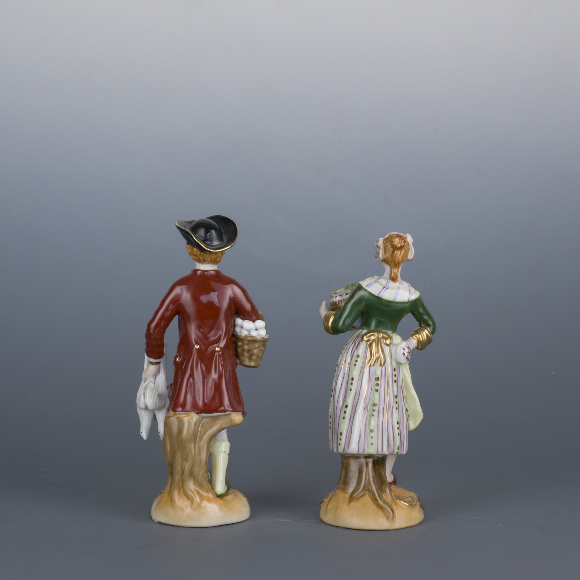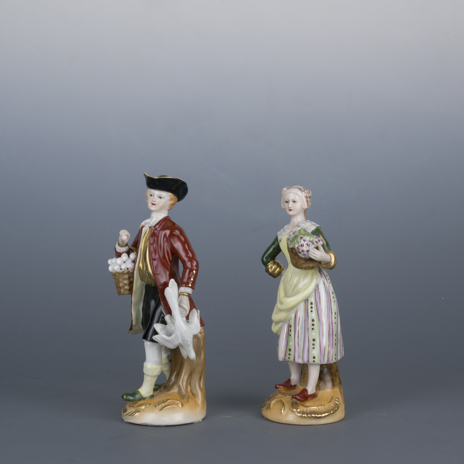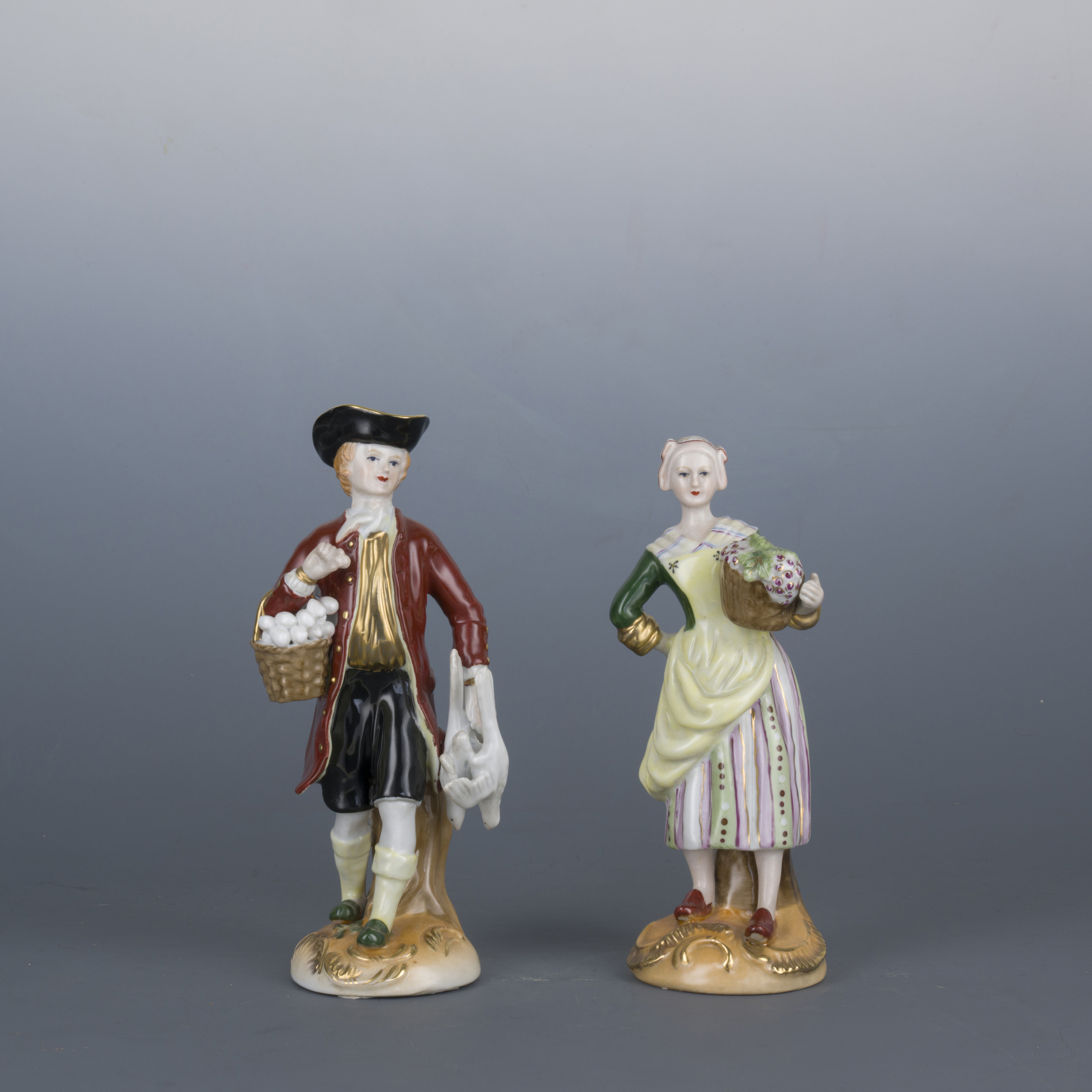 Raffigurante giovane contadino con cesto di uova e giovane contadina con cesto di frutti