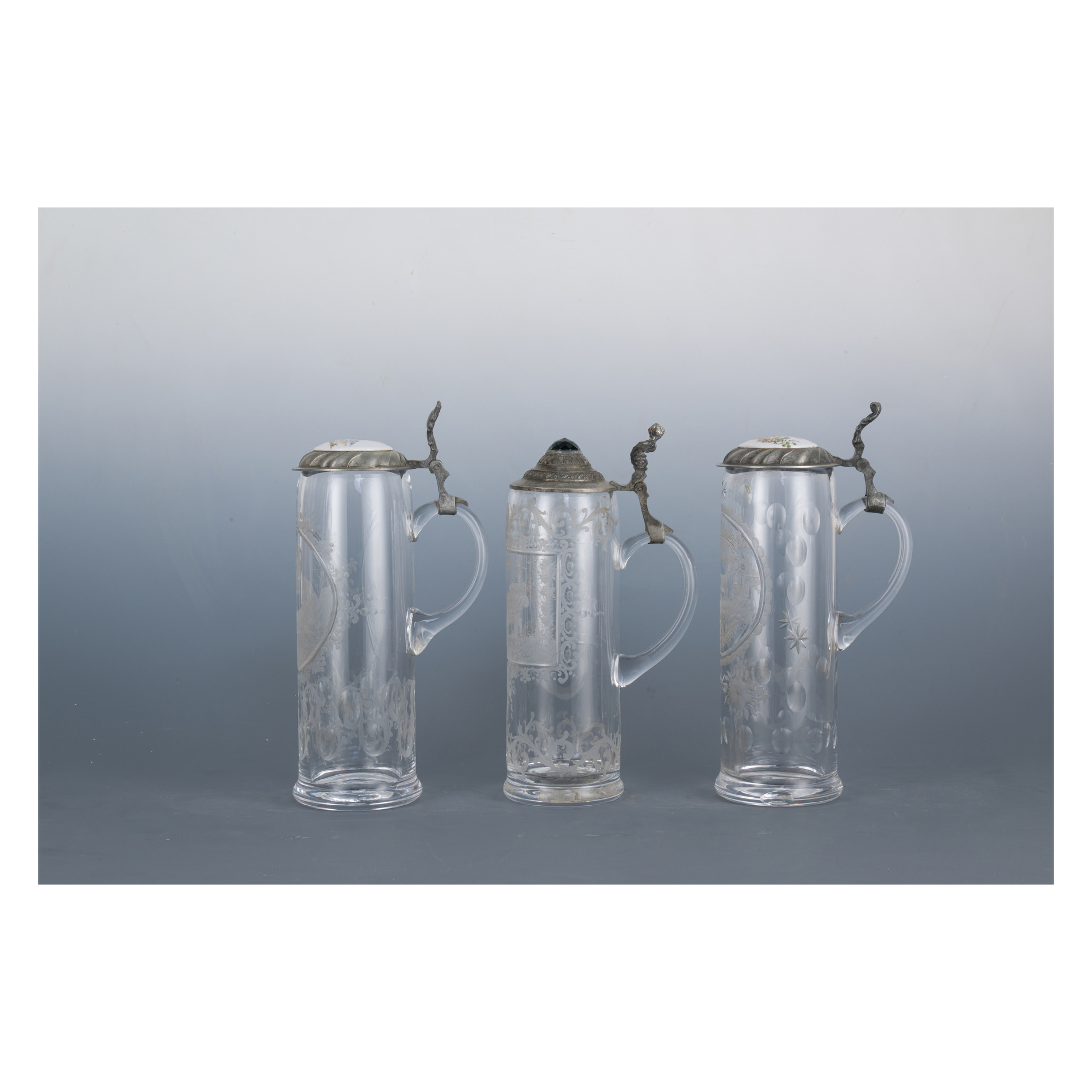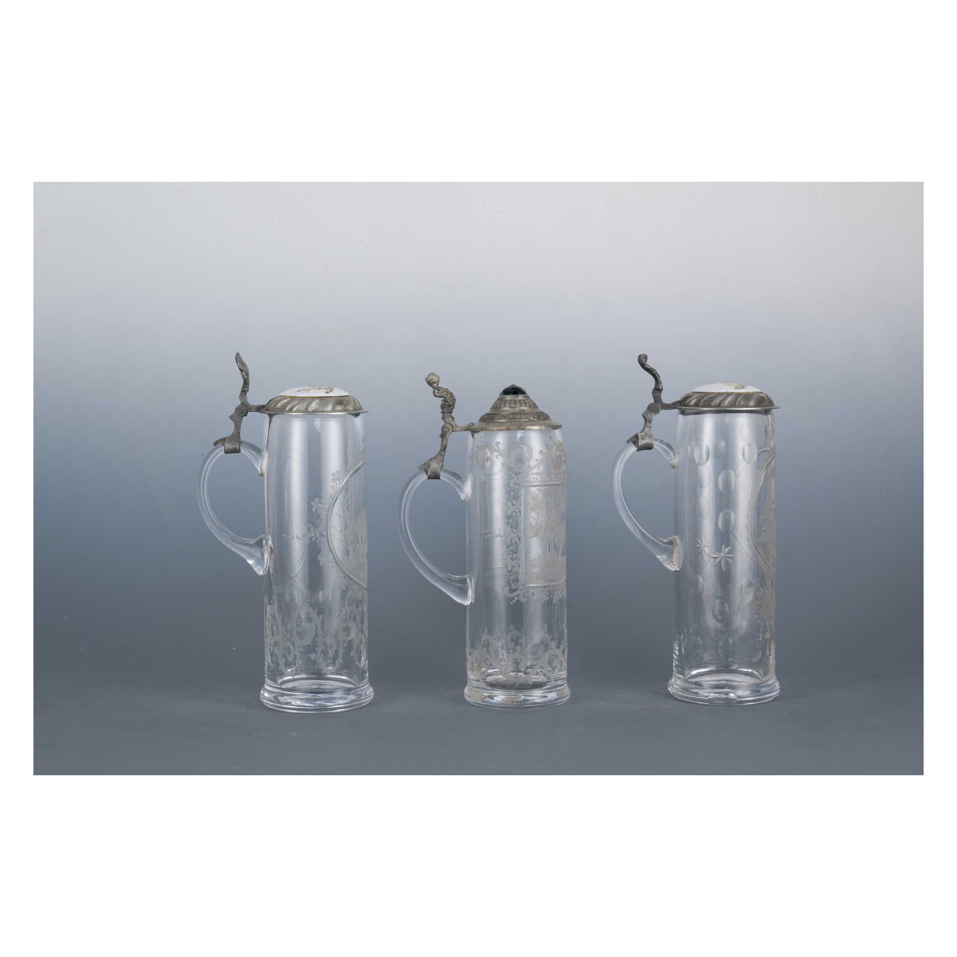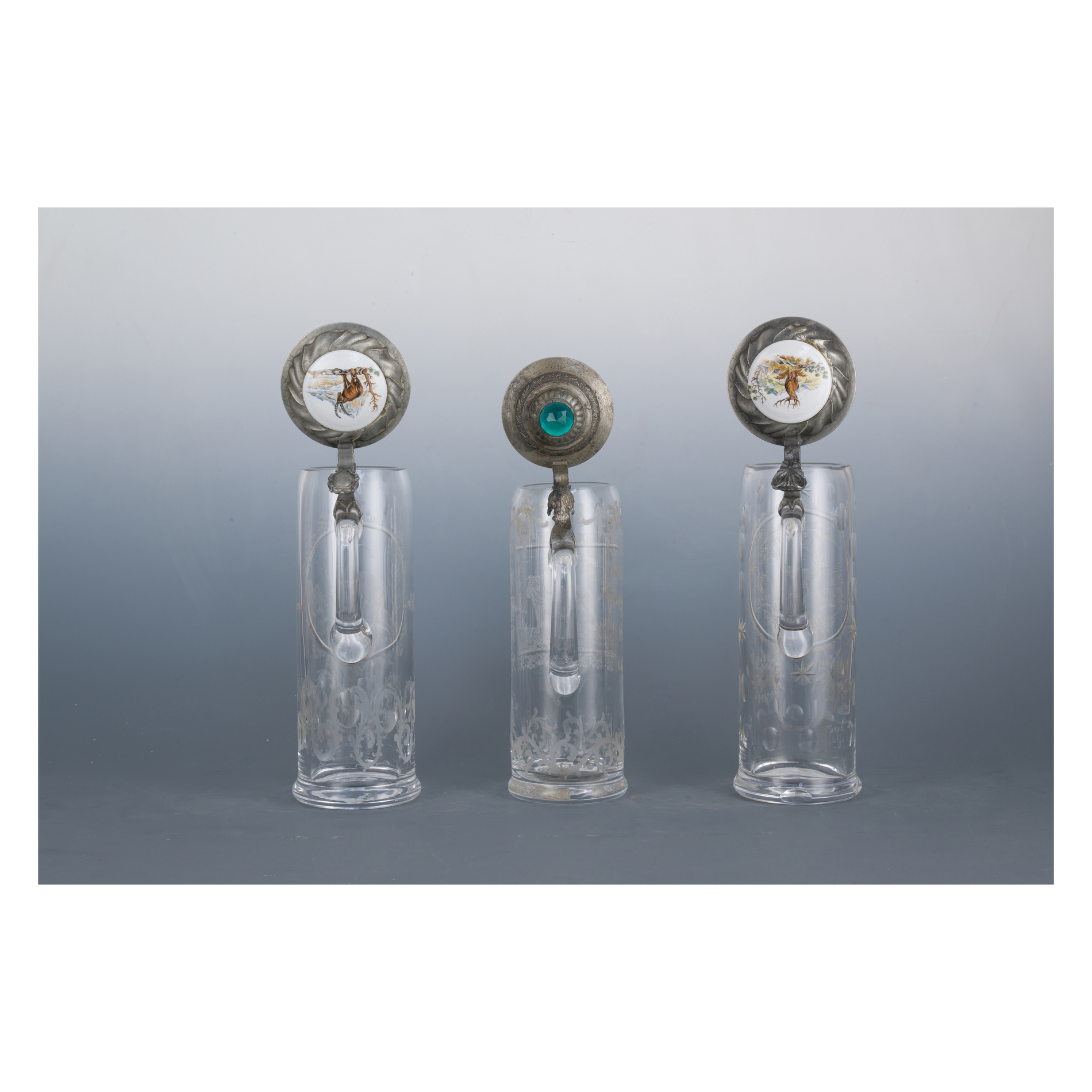 Three beer steins, German Area, 19th century