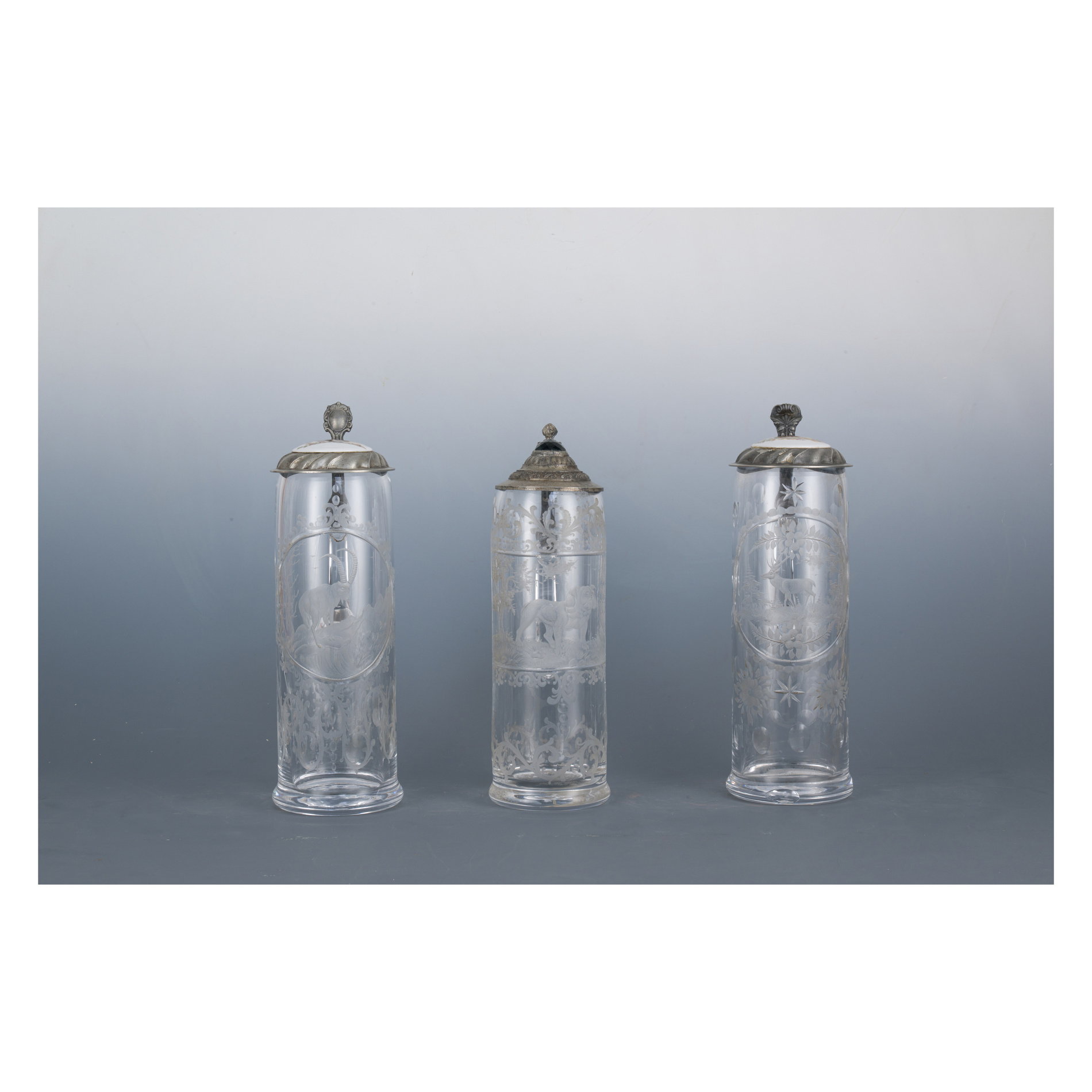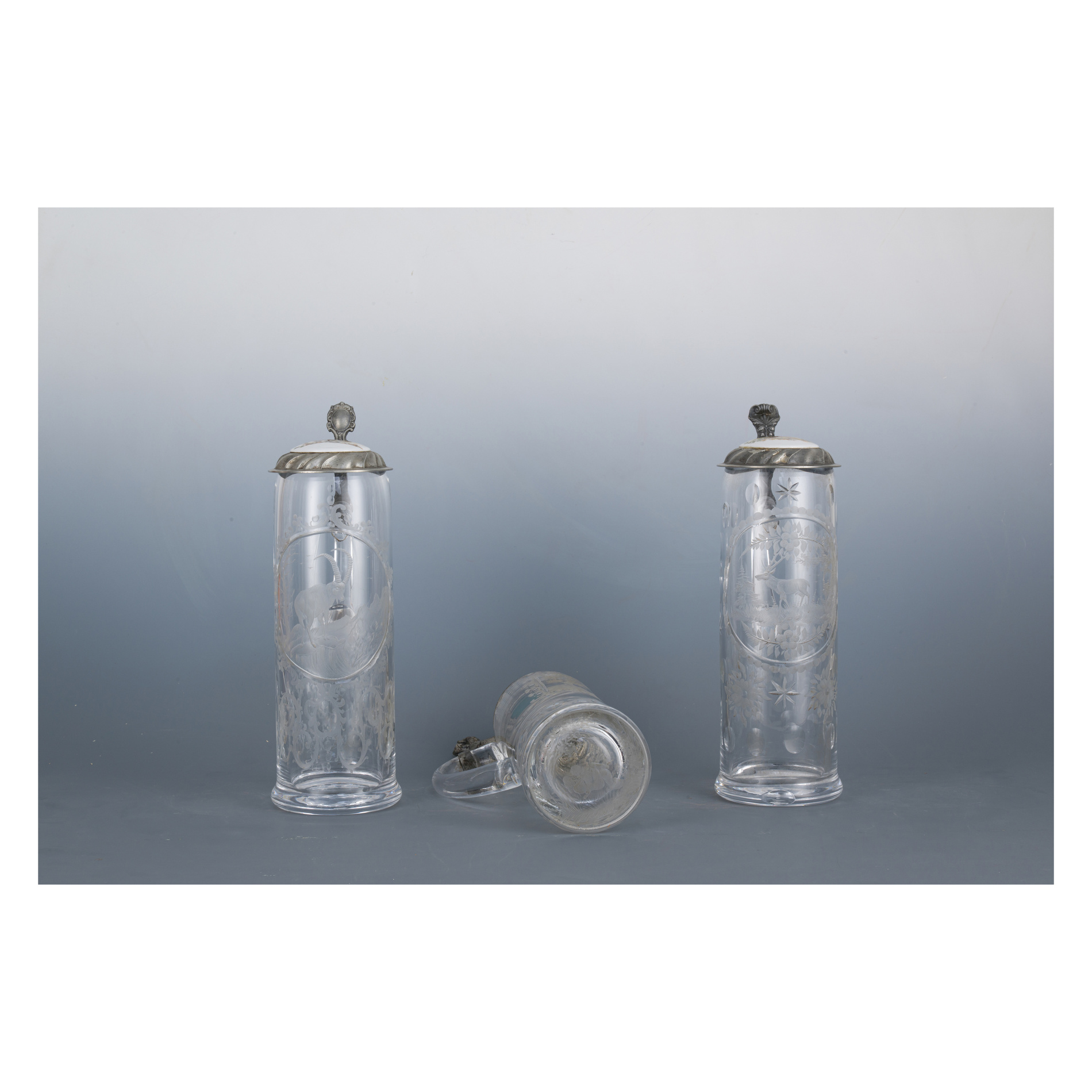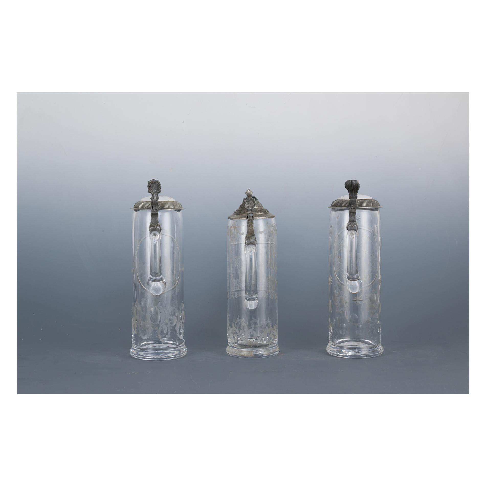Three beer steins, German Area, 19th century