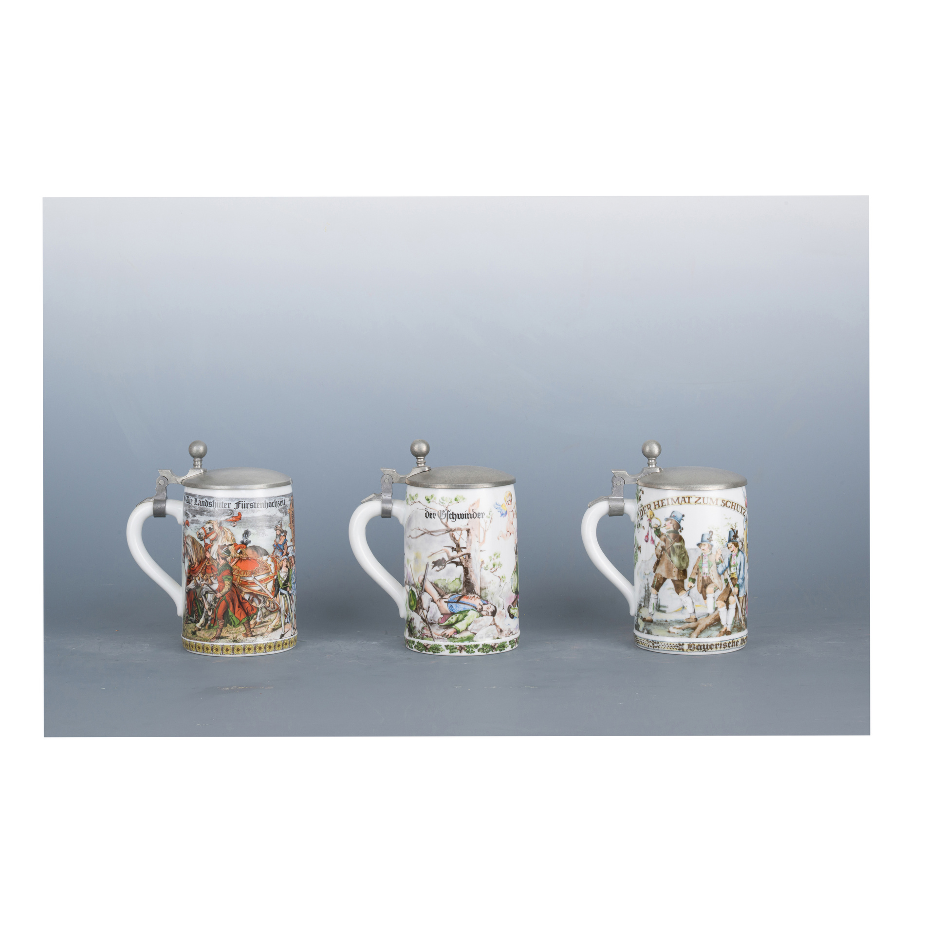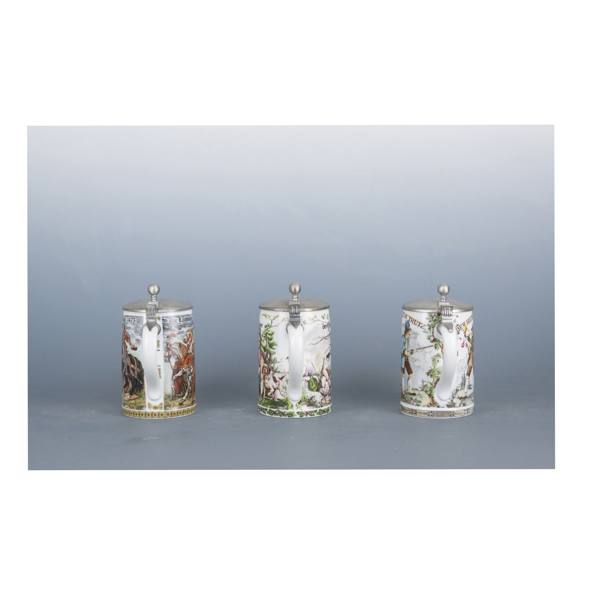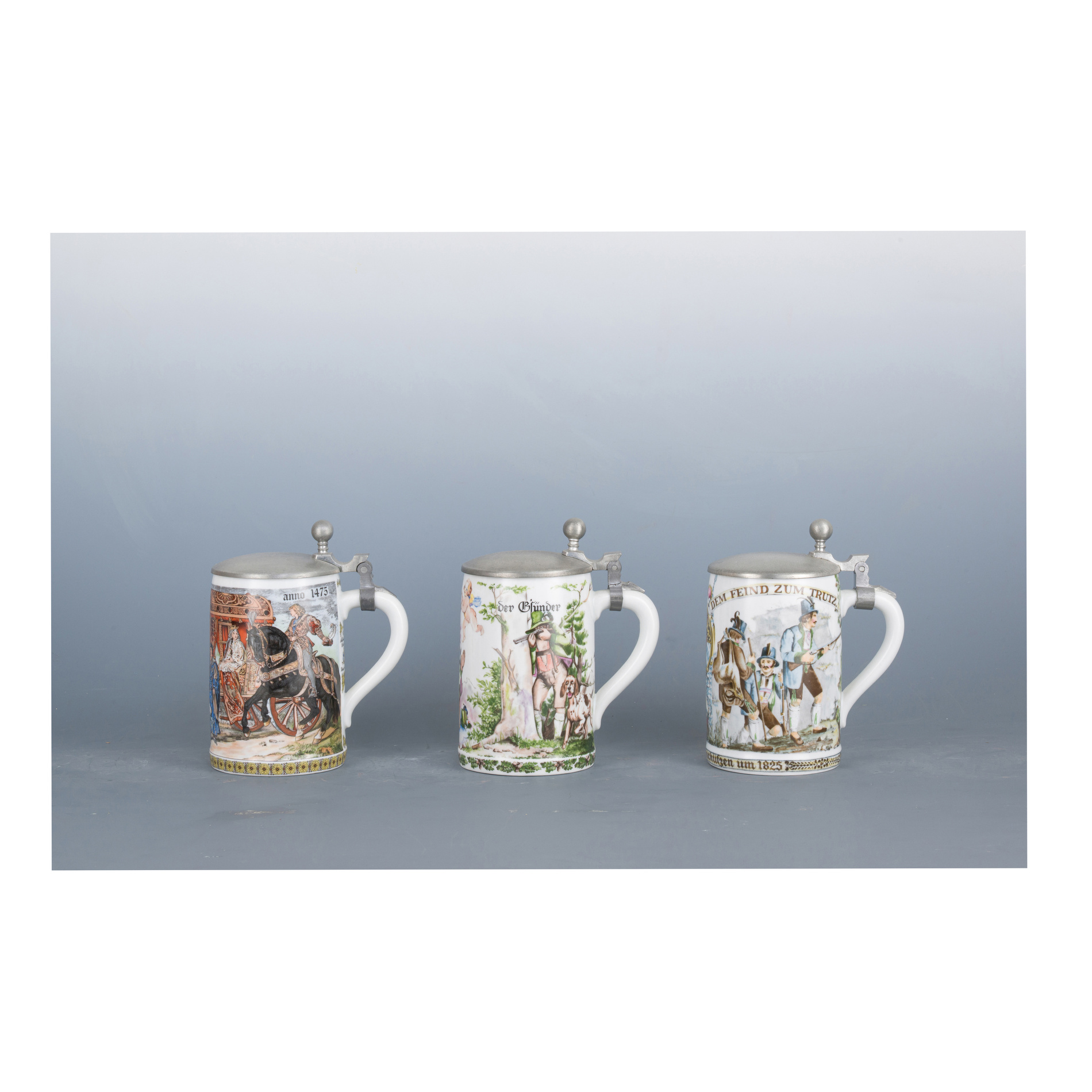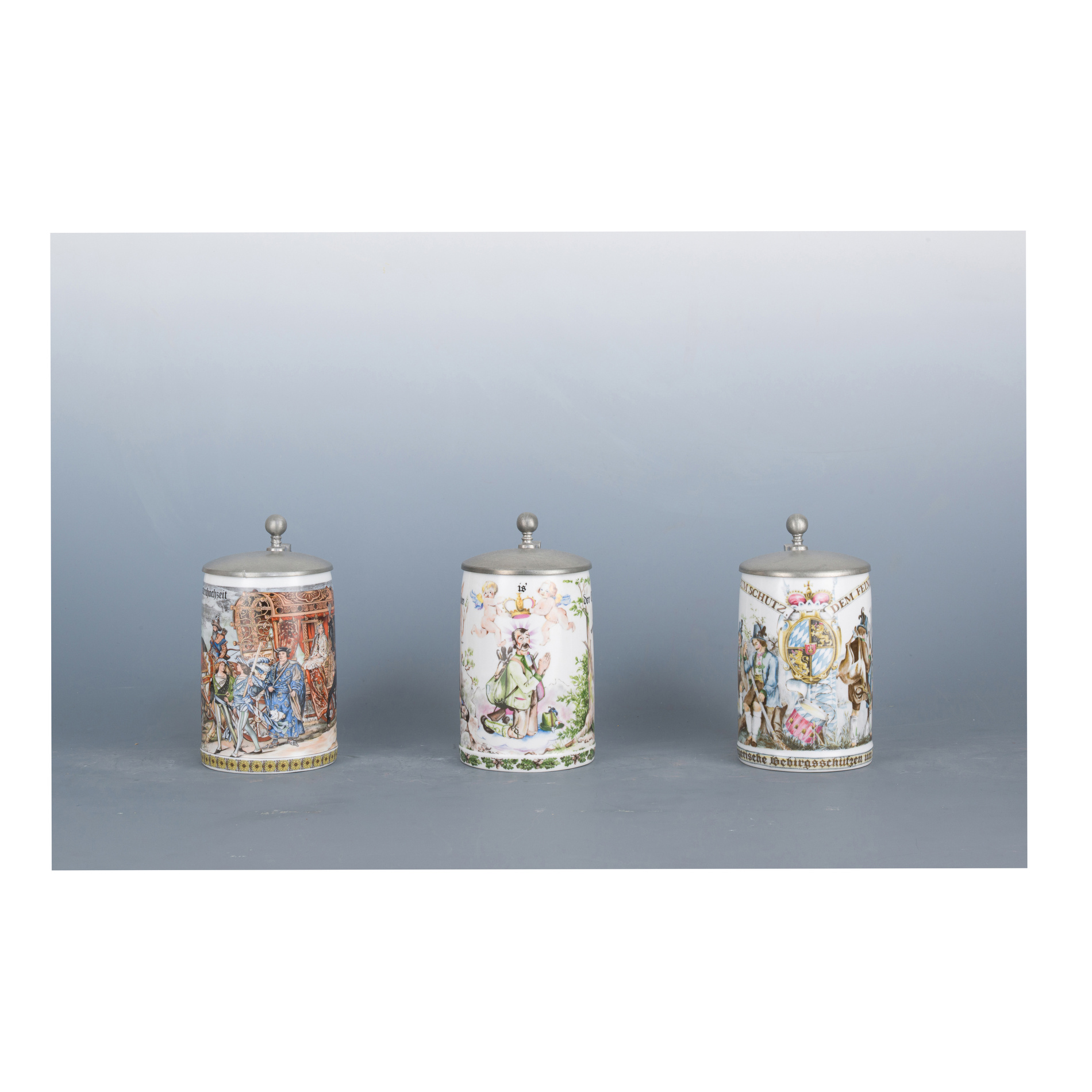 Three beer steins, German area, 19th century